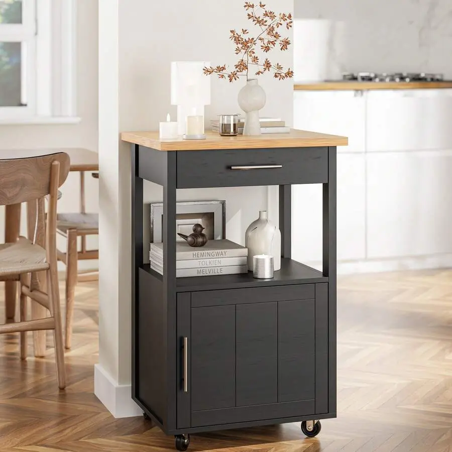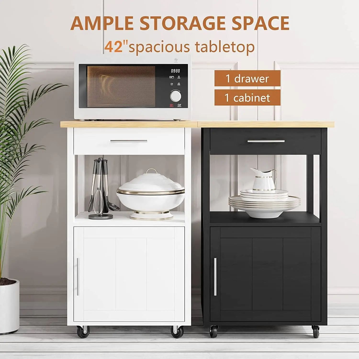 Kitchen Island Cart With Storage,Rolling Kitchen Island Side Table On Wheels With Worktop,Single Door Storage Cabinet And Drawer For Kitchen,Dinning Room, White