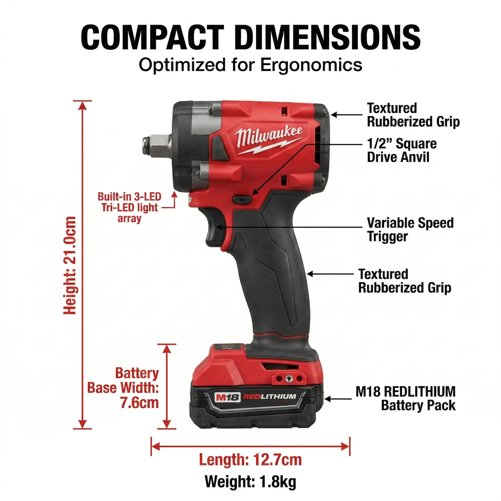 The Milwaukee M18 impact wrench is an ideal choice for professional disassembly and heavy-duty operations, with high torque, high endurance, lightweight and high efficiency.