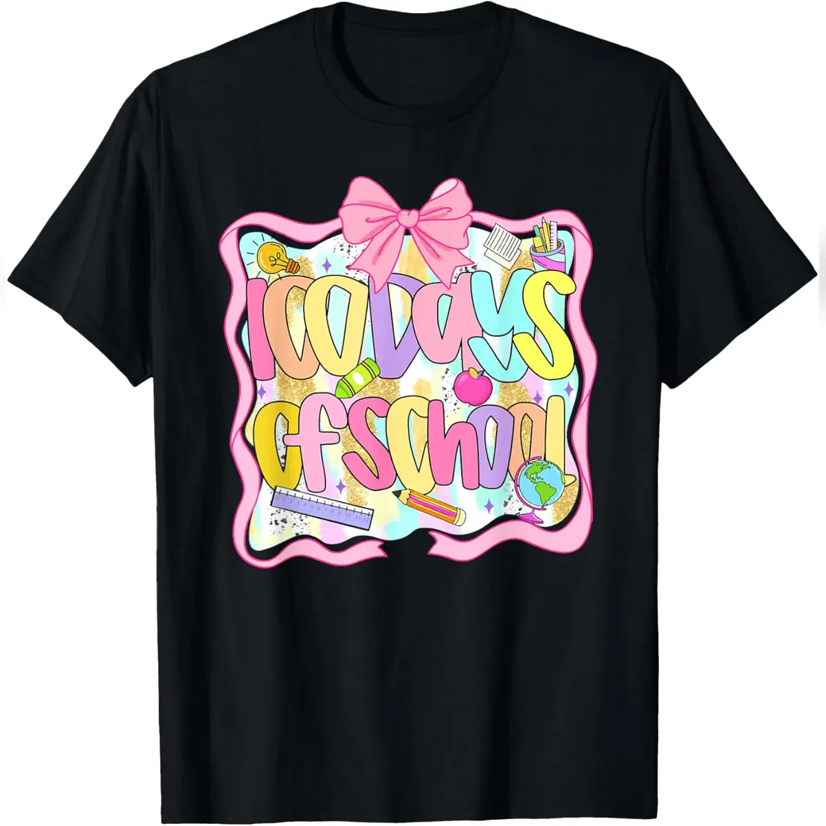 100 Days Of School Preppy 100th Day Of School Teachers Girls T-Shirt Comfy Everyday T-Shirt