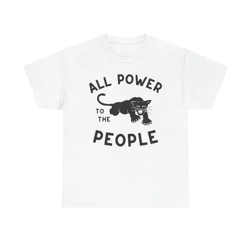 All Power to the People Black Panther Party T-shirt - Short Sleeve Cotton Tee for Men Casual Streetwear Top Natural Material Political Gift Round Neck Stylish Menswear Tropical
