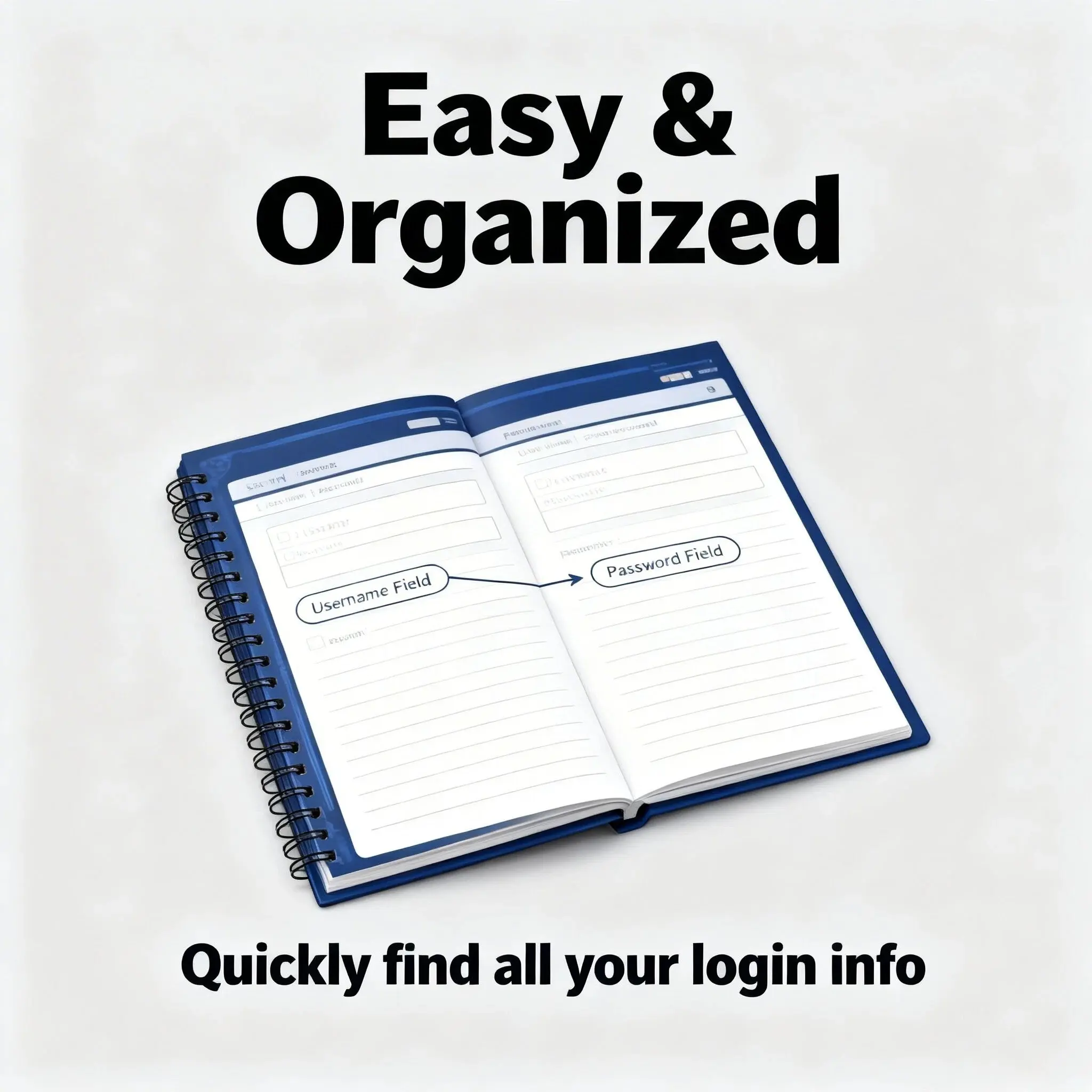 Keeps all your addresses and login details neatly stored in one convenient notebook for efficient, hassle-free management.