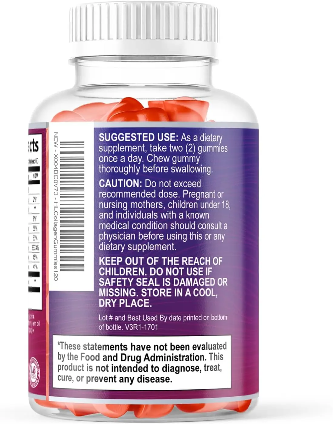 These gummies are designed to support hair, skin, and nails. With 120 gummies in each pack, you can easily incorporate them into your daily routine. Experience the benefits of collagen peptides in a tasty and convenient form.