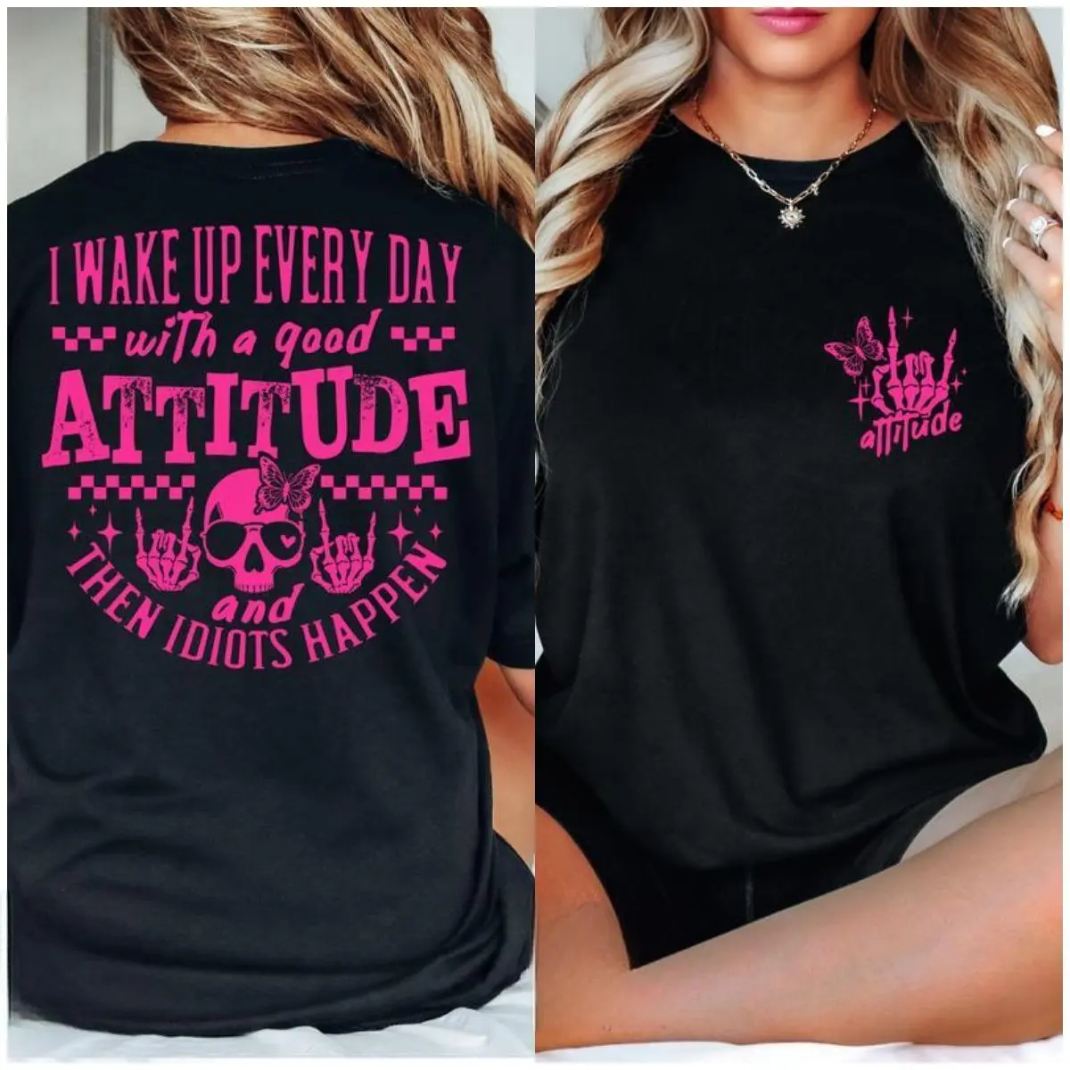 I Wake Up Everyday With a Good Attitude and Then Idiots Happen Funny Graphic T-shirt