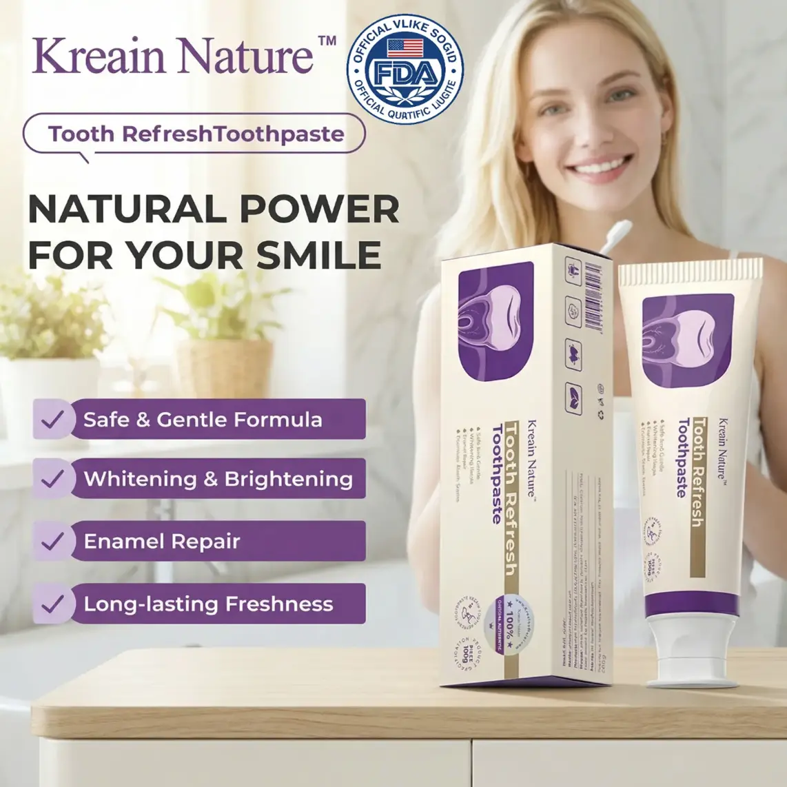 【Buy 1 Get 1 Free】Kreain Nature Oral Care Toothpaste – Natural Ingredient Toothpaste for Fresh Breath, Gentle Daily Oral Care, Helps Clean Teeth and Gums, Suitable for Sensitive Teeth and Daily Use
