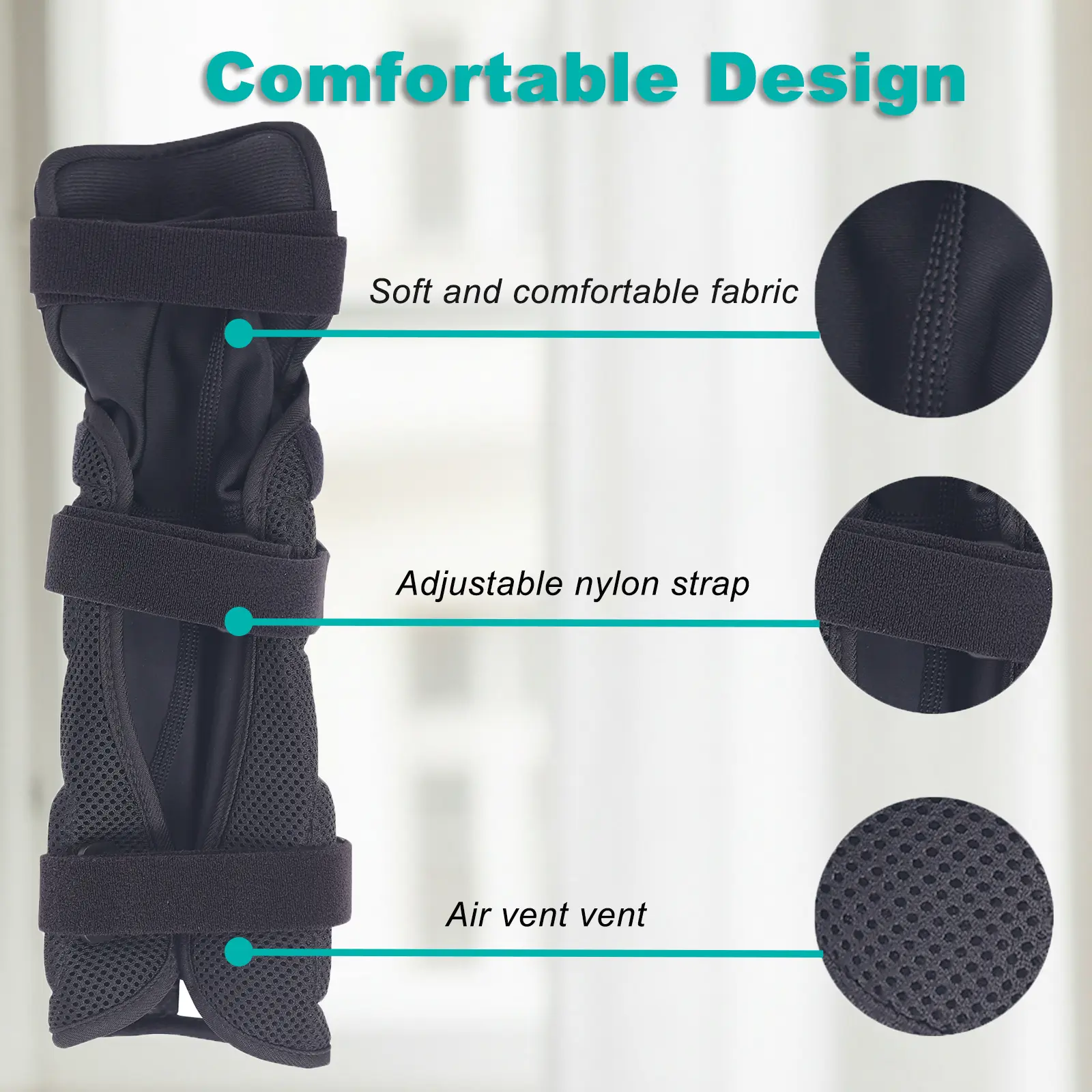 Bilateral symmetrical design, one set of protective gear can adapt to the left or right hand. Lightweight and breathable fabric, worn for a long time without feeling stuffy or affecting daily activities. It is an ideal choice for office workers, sports enthusiasts, and rehabilitation patients.