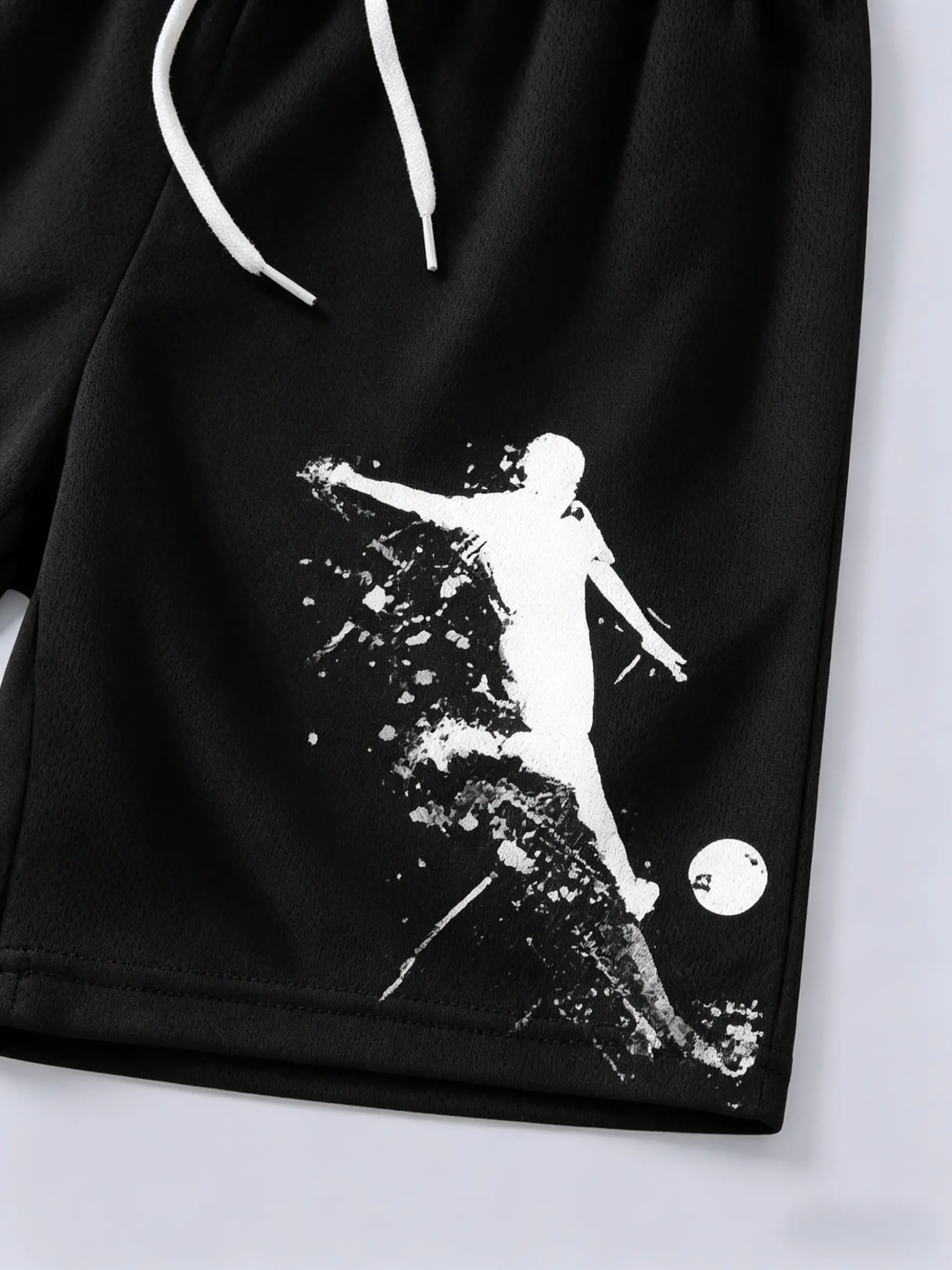 Let kids enjoy plenty of outdoor activities in summer—this boys’ soccer print T-shirt and shorts set is a perfect choice. The set features a dynamic soccer player pattern that exudes energy and athleticism, perfect for playtime on the pitch, soccer training, or everyday casual wear.