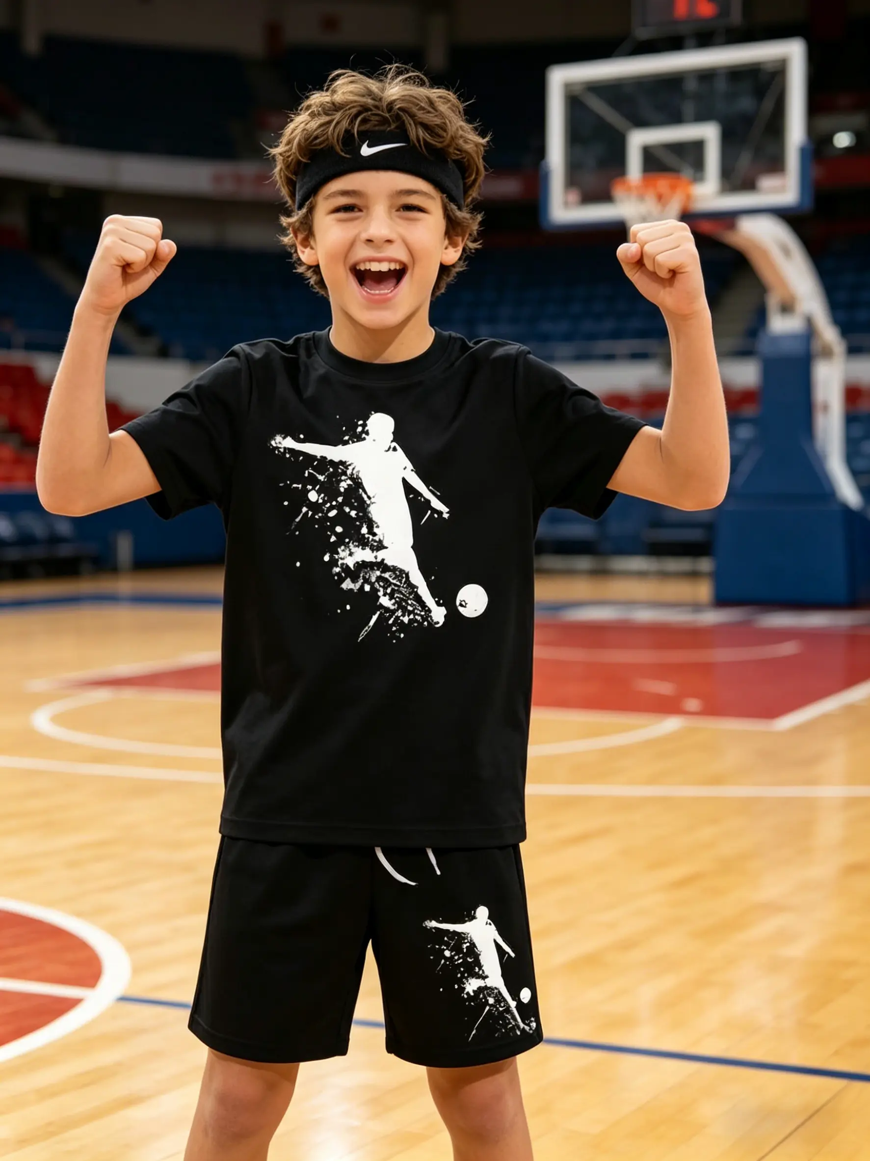 Available in black, gray, and white—easy to pair with other clothing items. Eye-catching soccer print design that adds a sporty, fashionable touch—kids love wearing it and don’t want to take it off.