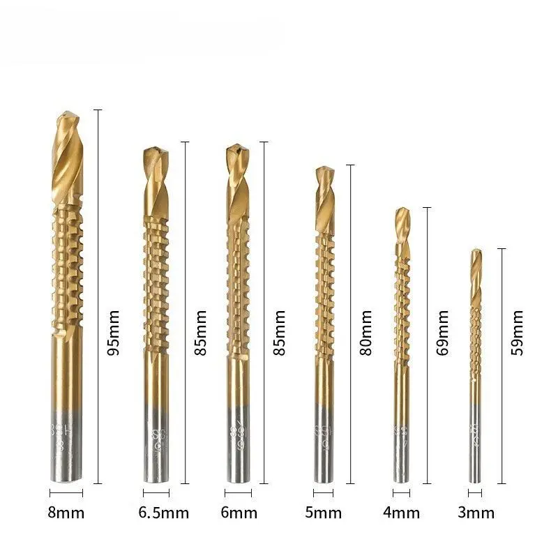 6 Pack Titanium Coated HSS Drill Bits | Serrated Side Cutting 3–8mm | Multipurpose Drill for Metal, Plastic & Wood