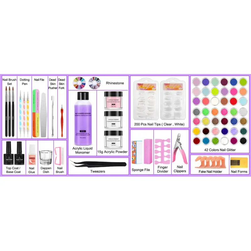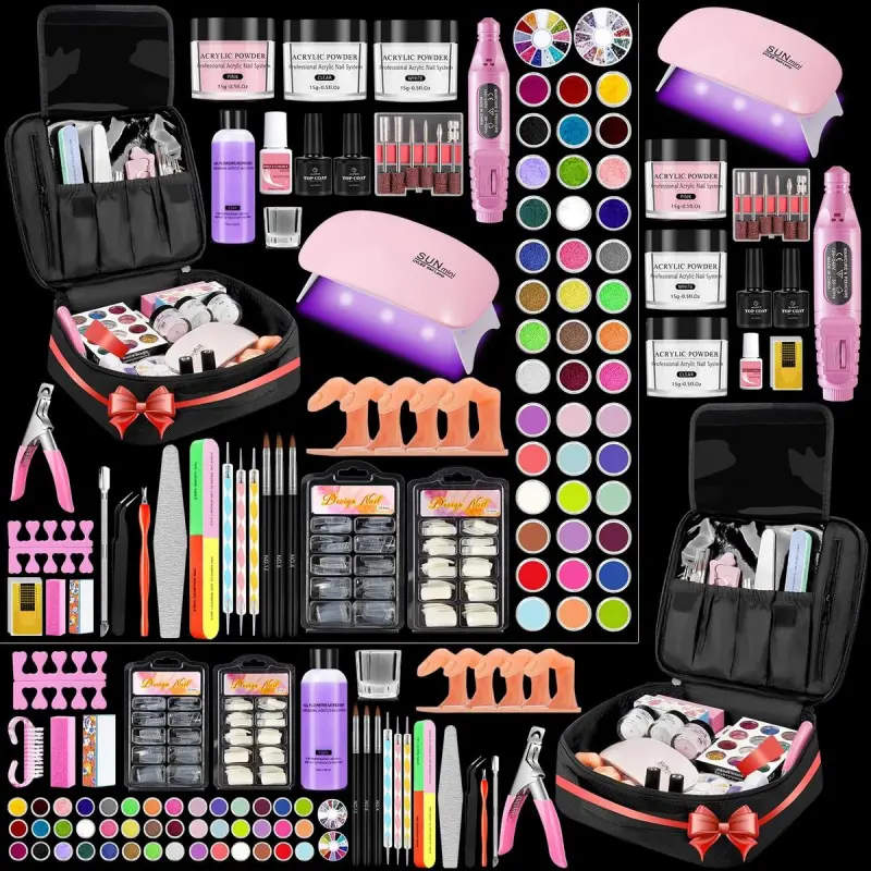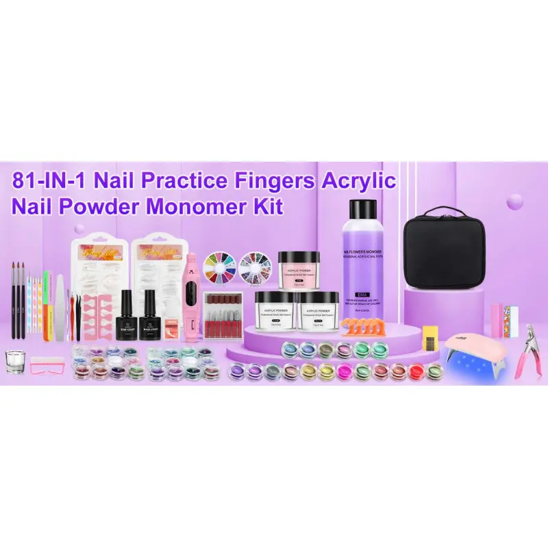 [81-IN-1 Everything You Need Is In This Nail Kit]: Complete nail set includes many nail art tools, like nail finger, acrylic powder, monomer acrylic liquid, UV/LED nail lamp, electric nail drill and bits, glitter, rhinestones, french nail tips, nail glue, nail clippers, nail brush & pen, nail files, nail bag etc. Save money and effort, you don't need to buy nail products separately! [42 Colors Nail Glitter Powder]:This nail kit acrylic set contains 42 different colors of glitter powder. Whether it is shiny, shiny, neon, autumn, nail, Christmas, as long as you can think of nail styling style, there is the glitter color you need, absolutely worth it. You can easily dress up your nails with the help of 42 color glitters! [20000RPM Nail Drill And 6W UV LED Nail Lamp]:Nail starter kit for beginners acrylic with everything comes with 6pcs replaceable nail drill bits and 3000-20000rpm professional nail drill offer flexible speed control, easier and safer to use! Portable foldable mini 6W UV/LED Nail lamp can fast cure all gels in 120s, easy to use and carry! [Upgraded Acrylic Nail Powder And Liquid Kit]:3 colors acrylic nail powder (white, clear, pink) is bubble-free polymers that will offer good clarity and provide a smooth self-leveling finish. Simple to use, it only takes 6~7 minute to completely dry, mix glitters and nail gem to get a new color and style. Acrylic liquid provides outstanding flexibility, adhesion, and absorption, when combined with dip powder it can keep color clarity and prevents discoloration. [Must Have Nail Art Tools Kit Set]:The black nail storage bag can contain all the nail tools of this set. It keeps nail tools for nail art so organized and easy to carry. Our acrylic nail set is the excellent gift for wife, mother or girlfriend. for any nail artist to make acrylic manicures at home or in salon.