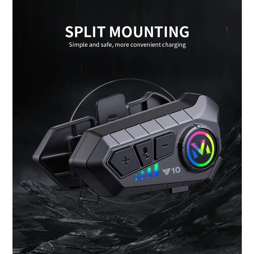 Y10 Motorcycle Helmet Headset Stereo Voice Control Bluetooth Hands Free Call  2000mAh With Ambient Light