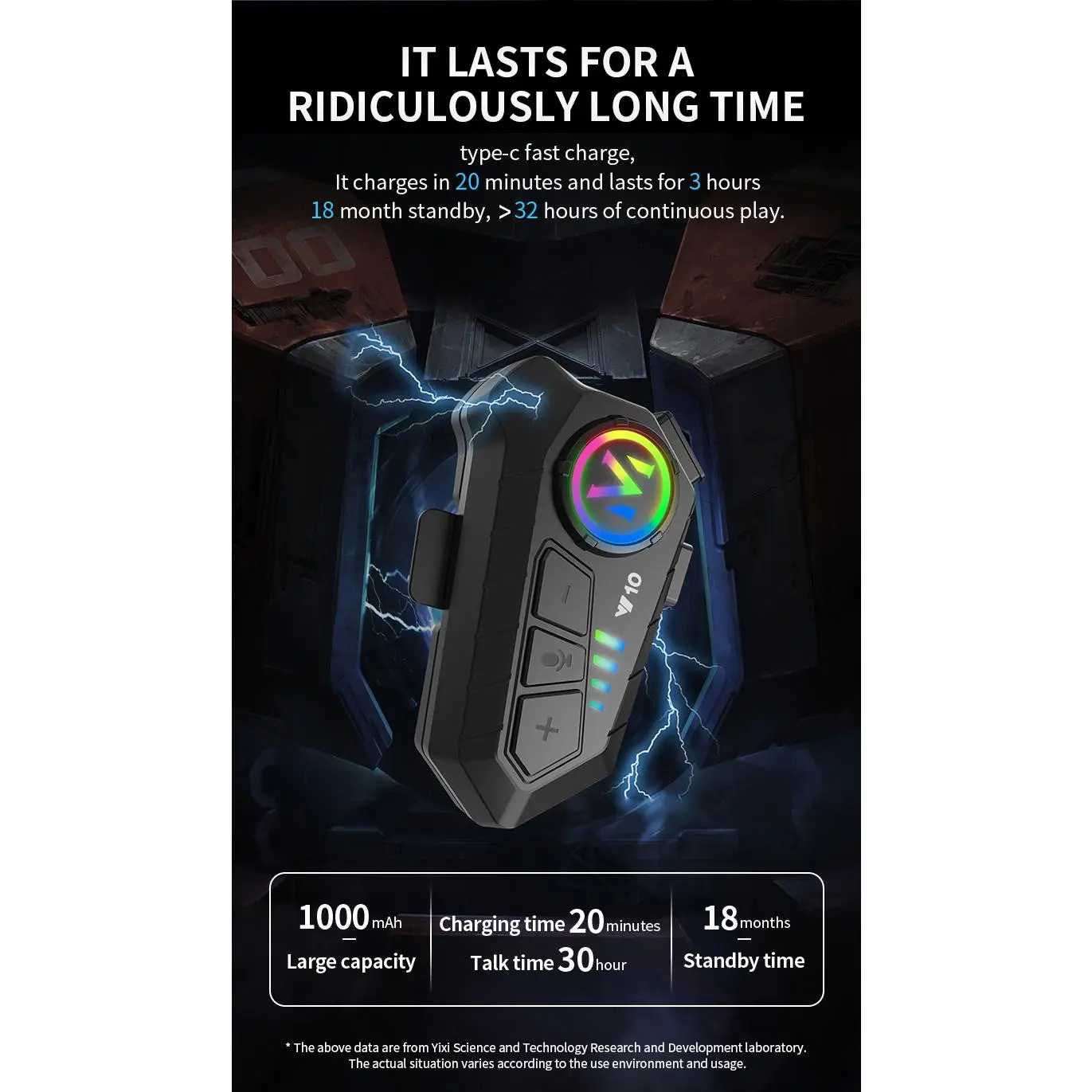 5. Y10 Motorcycle Helmet Headset Stereo Voice Control Bluetooth Hands Free Call 2000mAh With Ambient Light