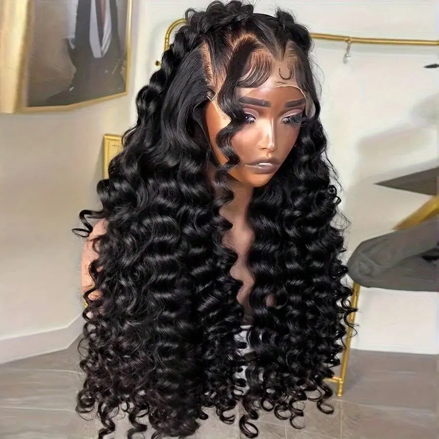 Loose Deep Wave Lace Front Wigs Human Hair 200 Density Glueless Wigs for Women Blended Hair Loose Wave 13x4 HD Transparent Lace Front Wigs Pre Plucked with Baby Hair Natural Black Color