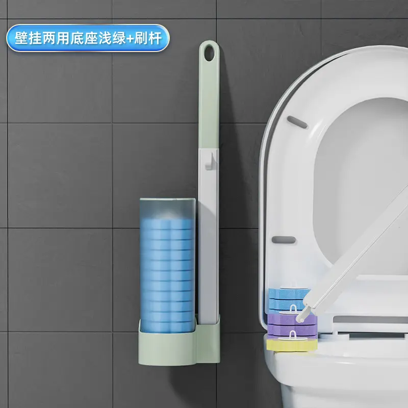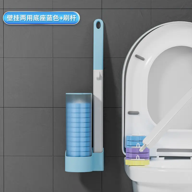 Disposable Toilet Scrubber with Refill Replacement Heads, Wall-Mounted Bathroom Toilet Cleaning Brush Kit, Hygienic Home Toilet Cleaner Tool
