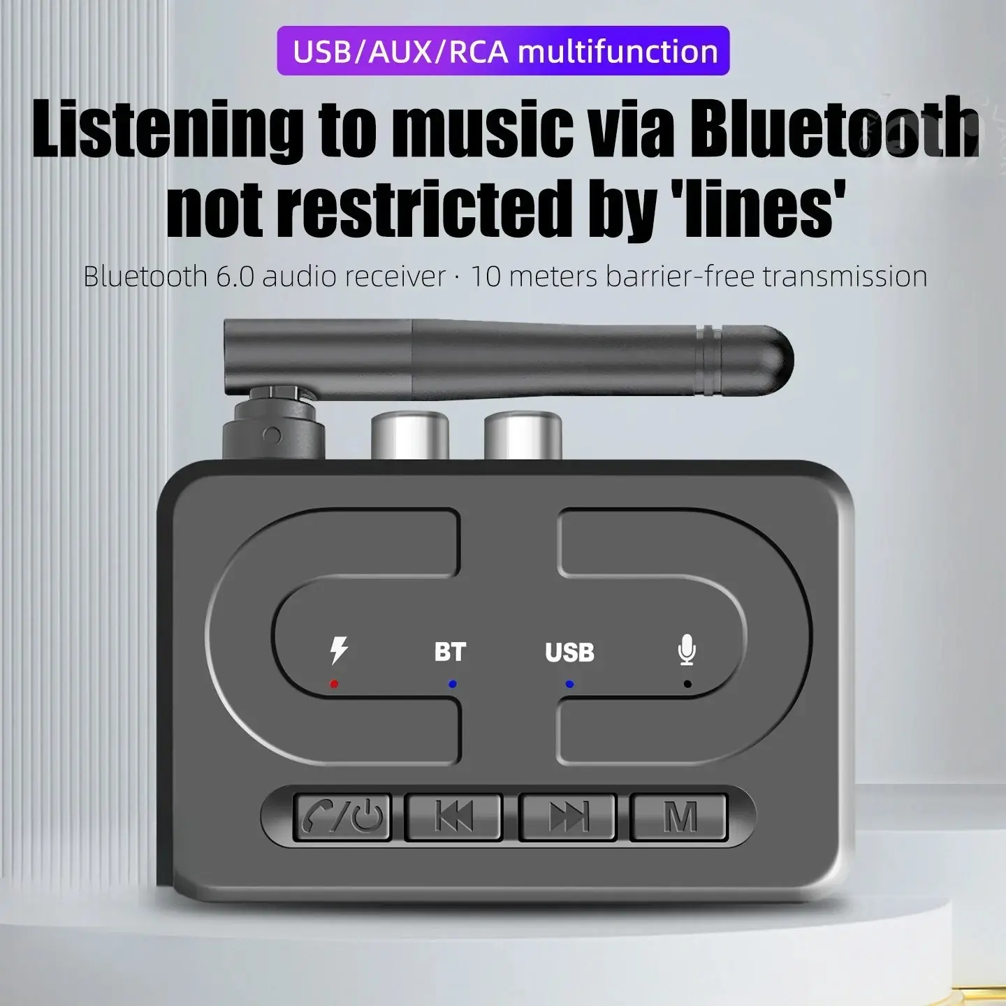 Bluetooth 6.0 Audio Receiver 3.5mm AUX RCA With Mic HIFI Stereo Wireless Adapter Support USB U-Disk For Car Speaker Amp