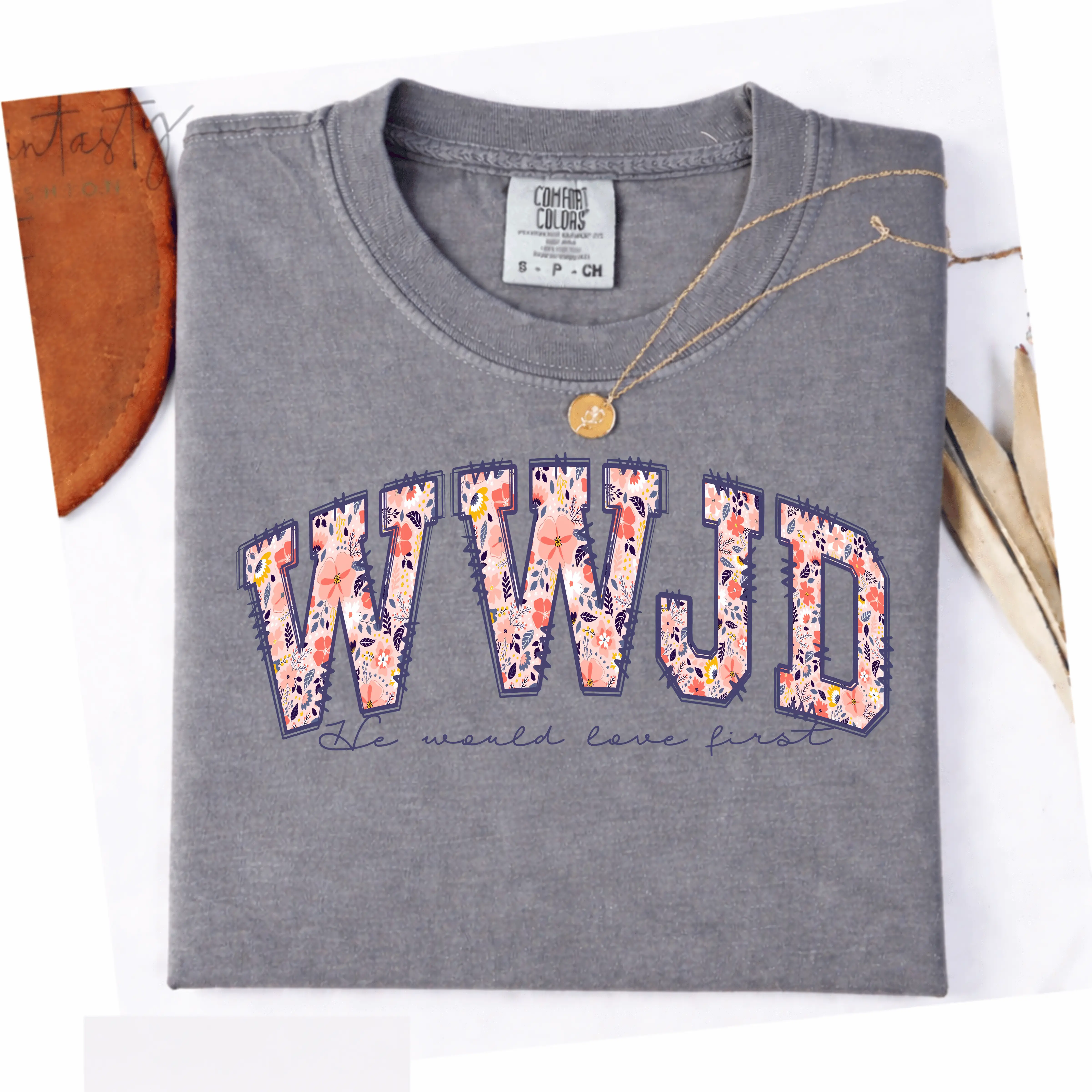 Comfort Colors WWJD Shirt, Christian Tee, Religious Gift, Walk Like Jesus T-Shirt, Bible Verse Faith Shirt, Women's Casual Tee