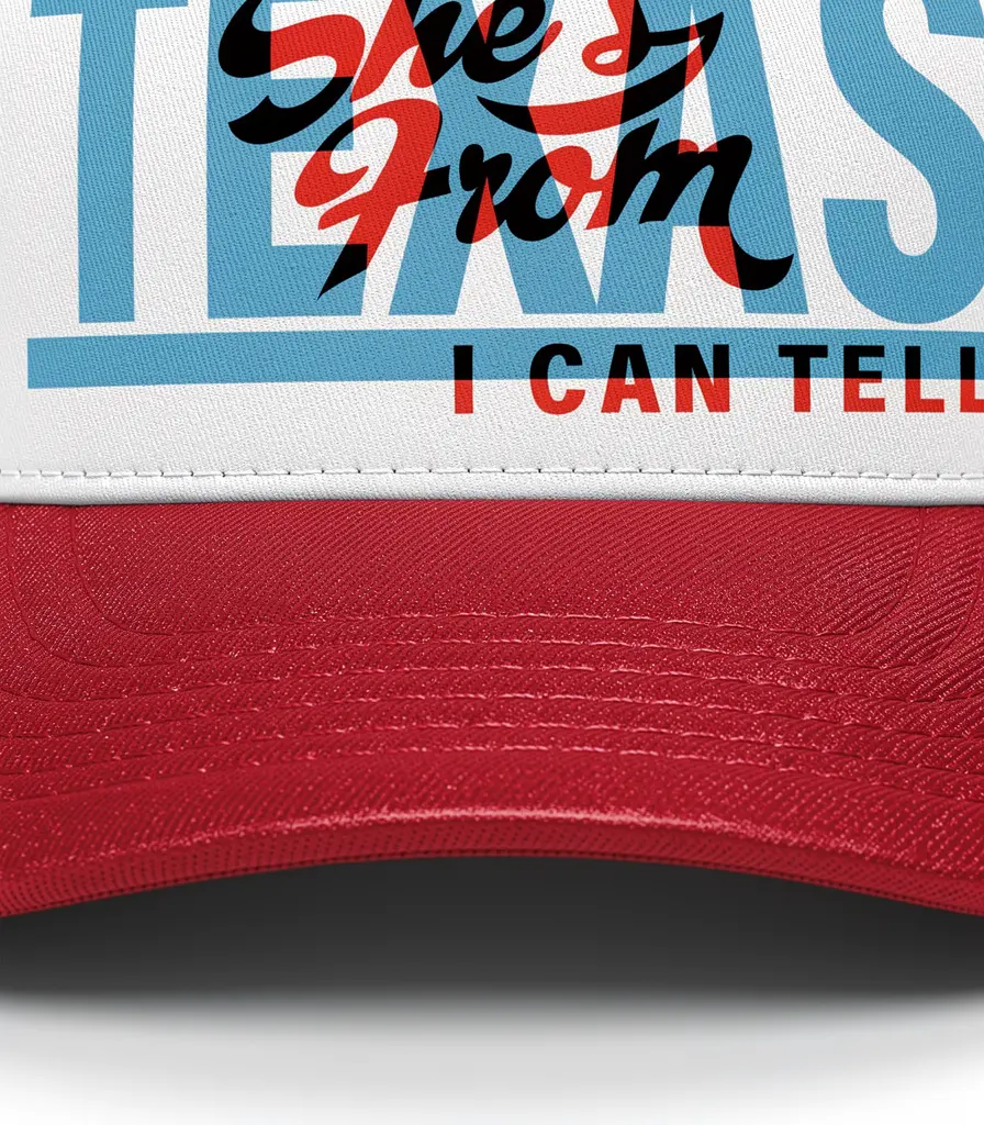 ·Premium “She’s From Texas” embroidery with crisp, durable stitching