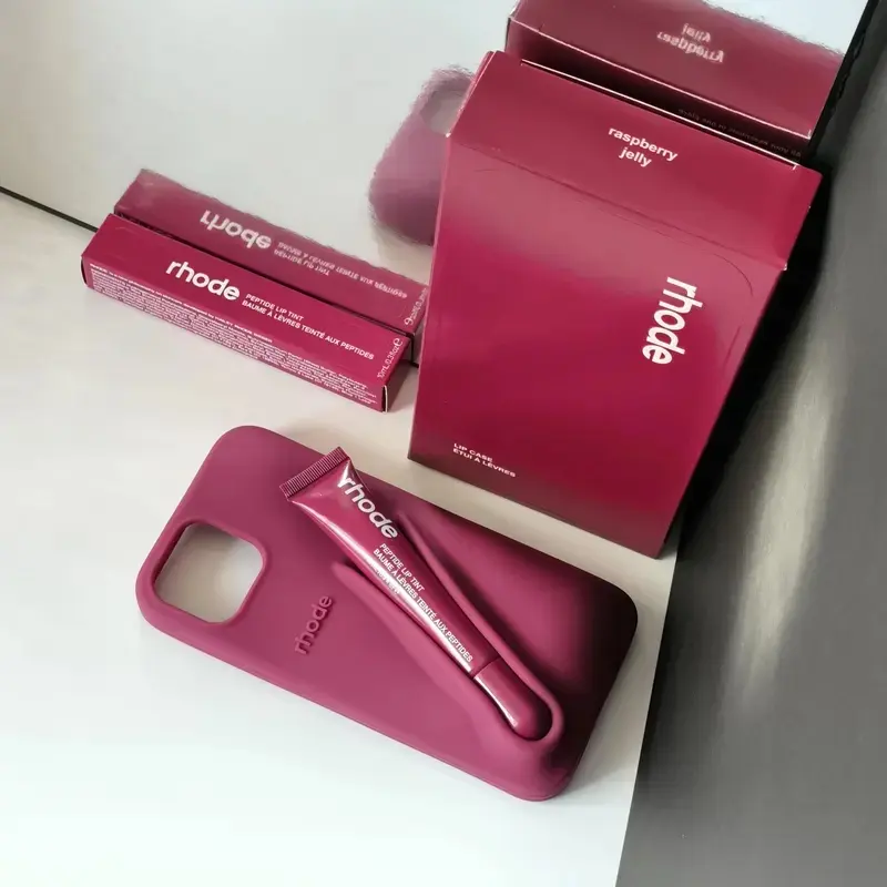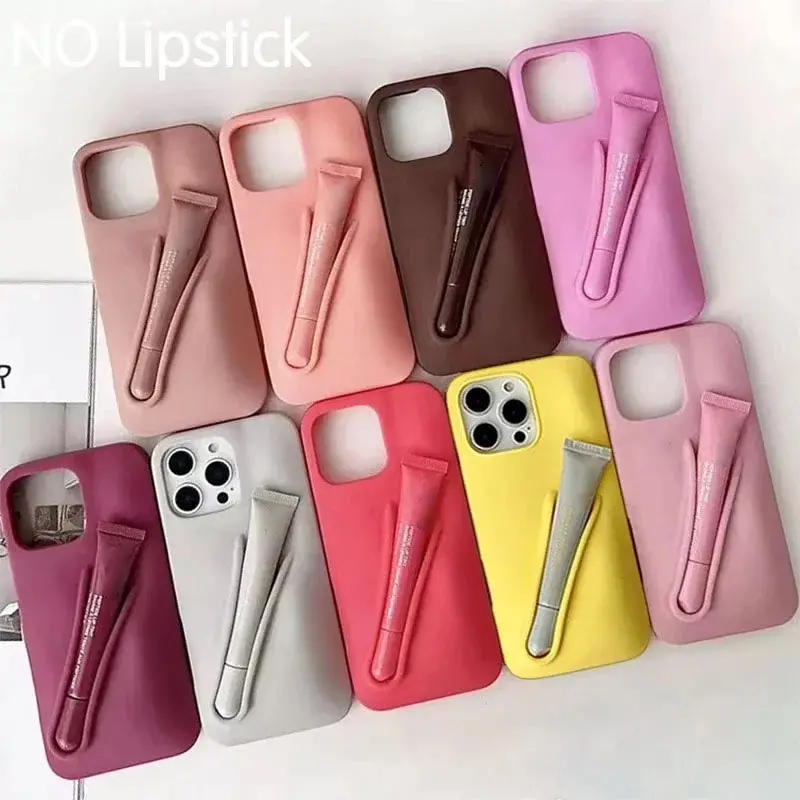 Rhode LipGloss Phone Case with Lipstick - Shock Proof, Anti-Fingerprint, Anti-Scratch, Dustproof, Matte, Non-Slip, Water-Resistant, Half-Wrapped, Camera & Key Protection, Easy to Clean, Fashion Solid Candy Color