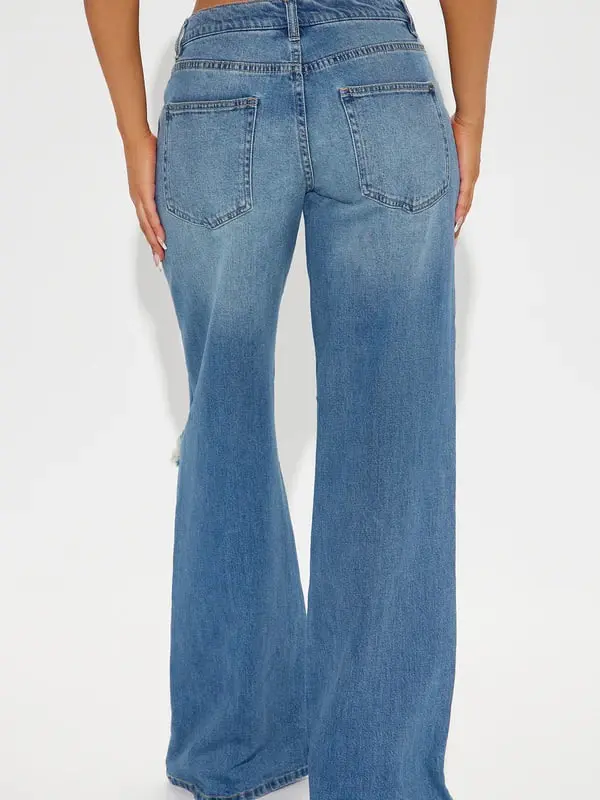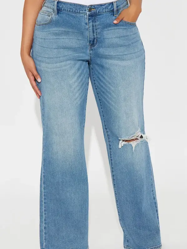 Tough Love Baggy Ripped Straight Leg Jean - Medium Wash