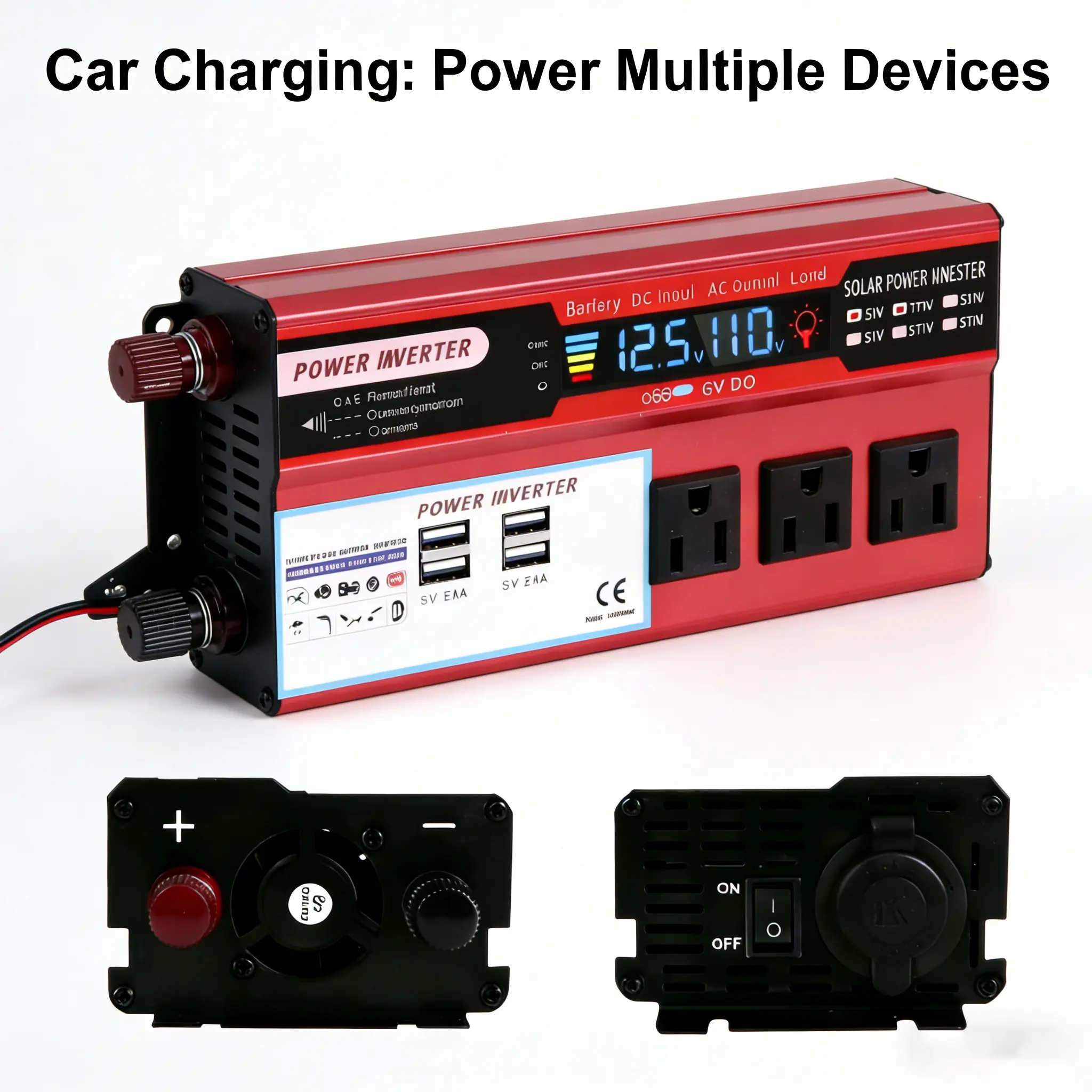 Transform your vehicle's power with this 5000W inverter. It converts 12V to 24V, offering 4000W peak power. Ideal for trucks, RVs, and off-grid setups. This inverter includes dual AC sockets and a USB port. Hardwire it for reliable power. Perfect for camping and solar backup systems.