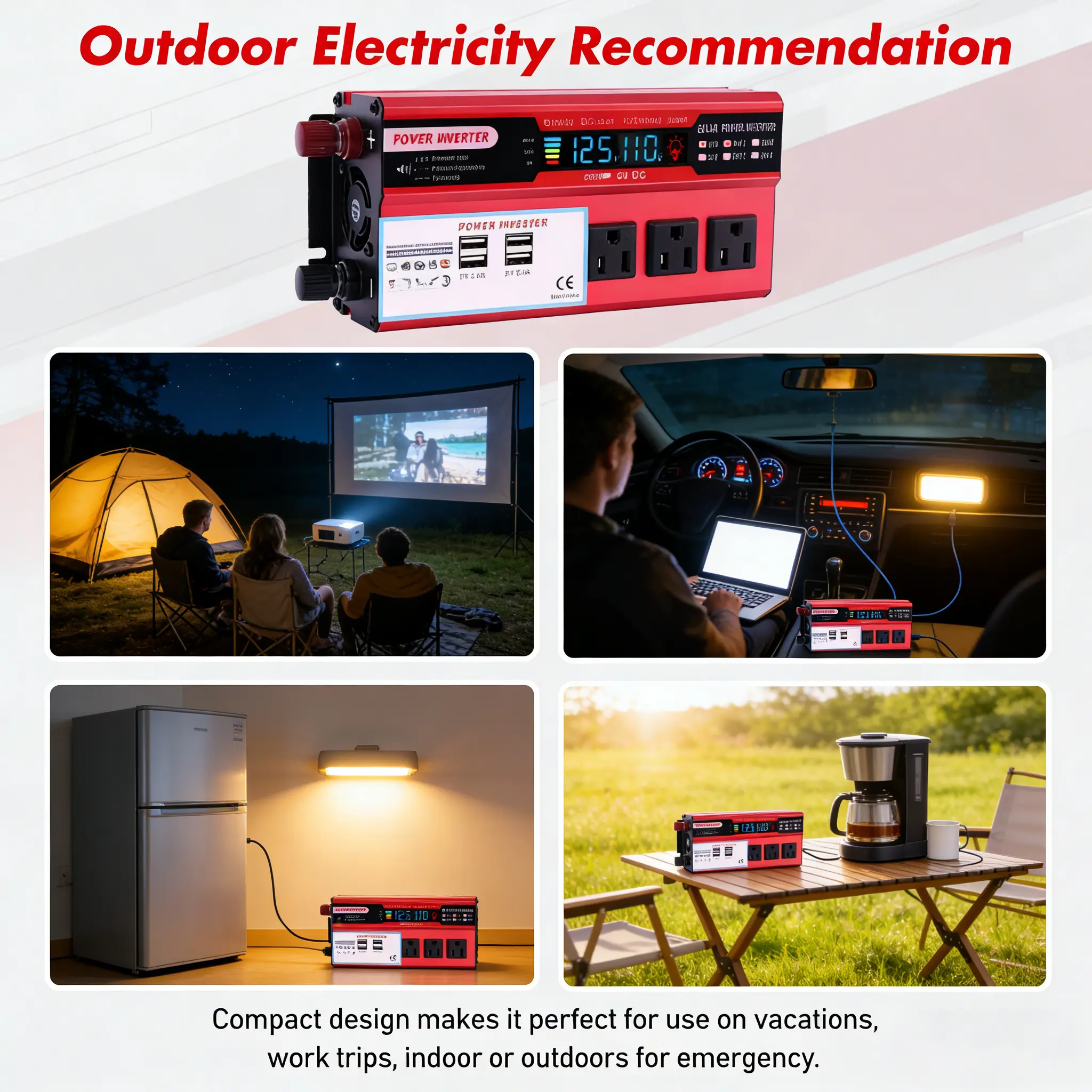 This inverter ensures stable power conversion from DC to AC. It's designed for vehicle camping and solar setups. The remote control adds convenience. Ideal for off-grid scenarios, it provides a reliable power source.