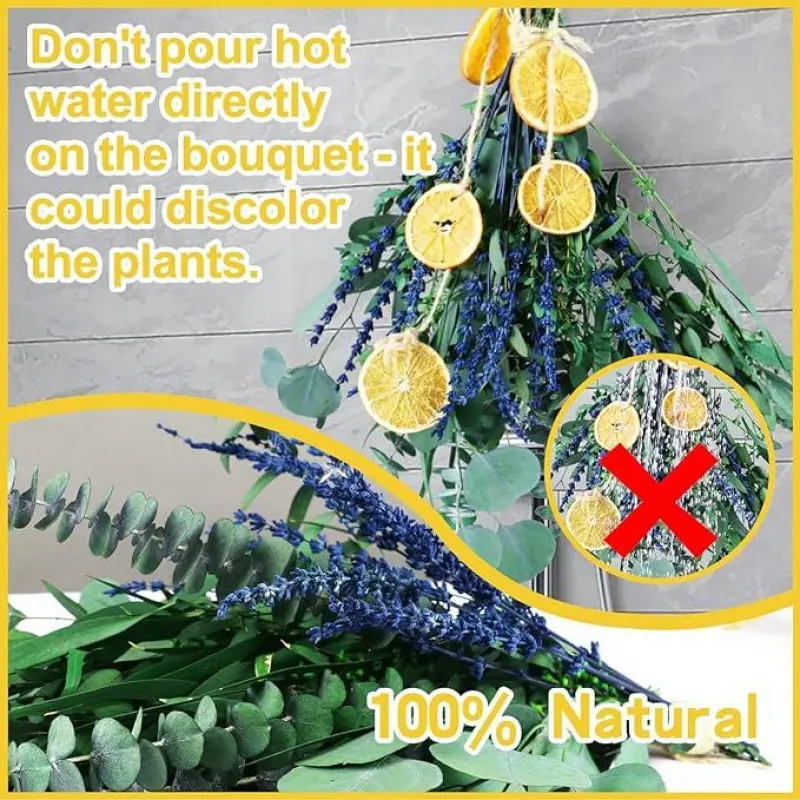 Elevate your home decor with this bundle of 5 kinds mixed dried eucalyptus and lavender.for showers and as a air freshener, this set adds a calming ambiance to any room.Hang it in bathrooms or living rooms for a soothing atmosphere.