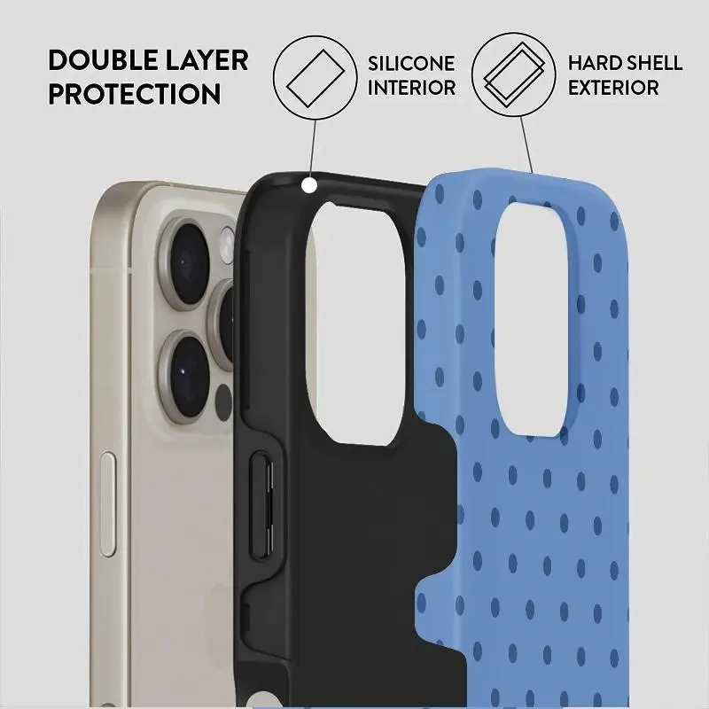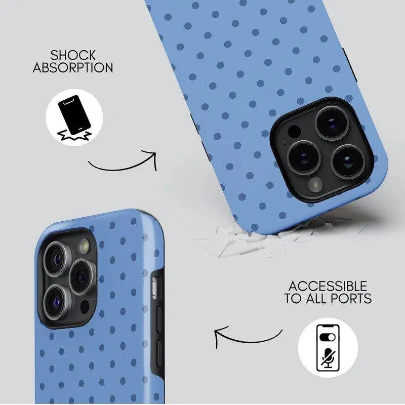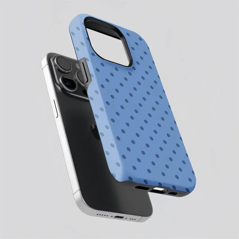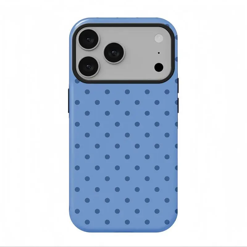 This phone case is compatible with iPhone 17, 16, 15, 14, 13, 12, and 11. It features a blue denim polka dot design, making it a stylish accessory for your device. Ideal for teenage girls, it combines fashion with functionality. 📱