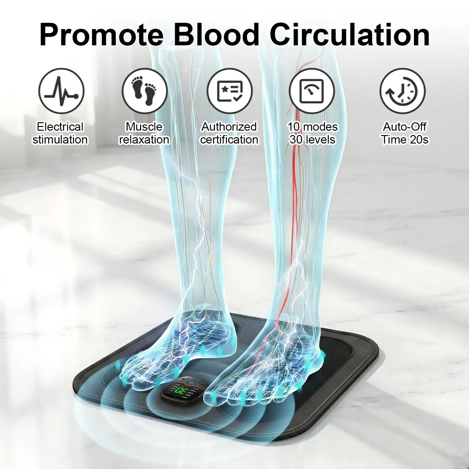 EMS Foot Massager Electronic Muscle Stimulator, Powered Electric Massager for Foot Pain Relief & Blood Circulation