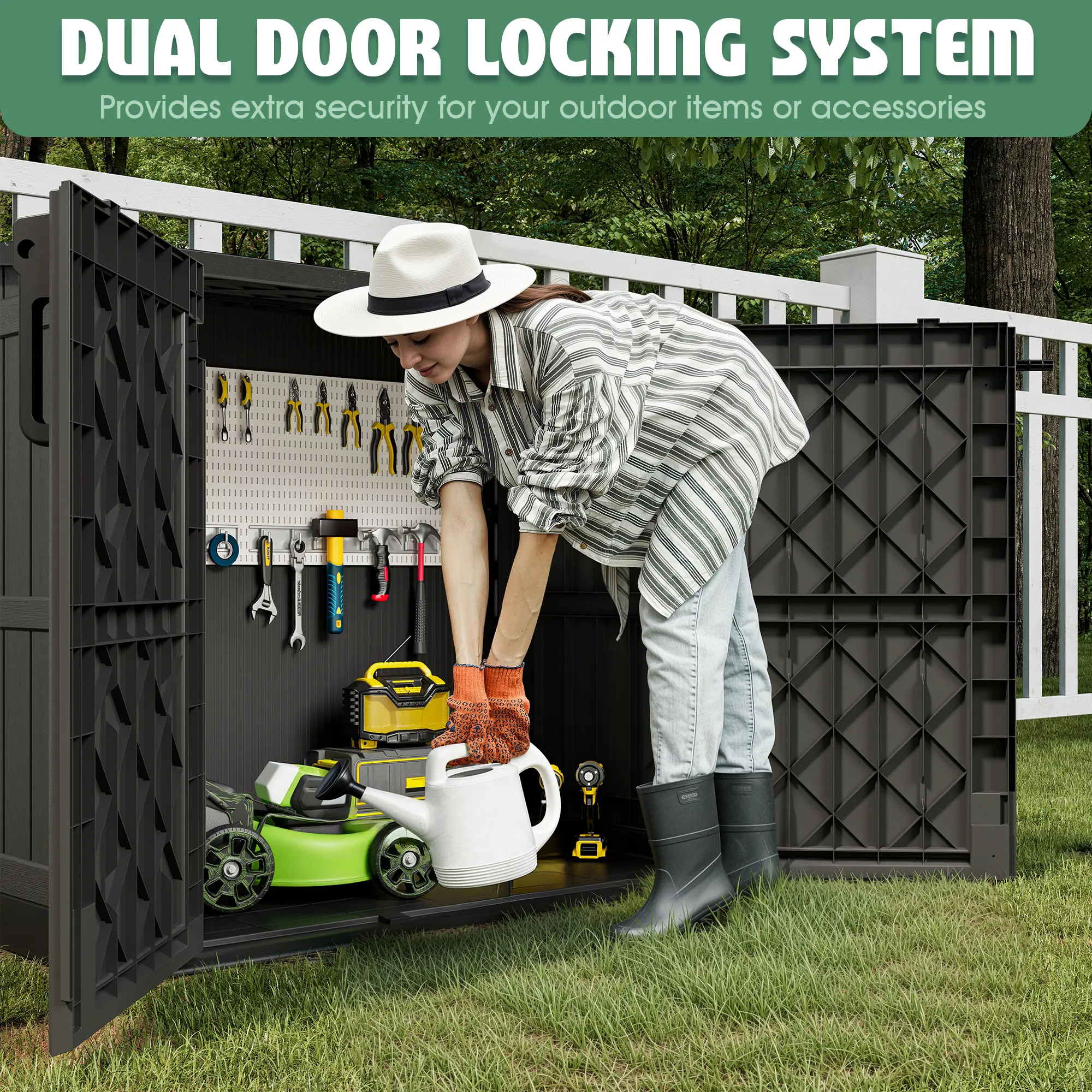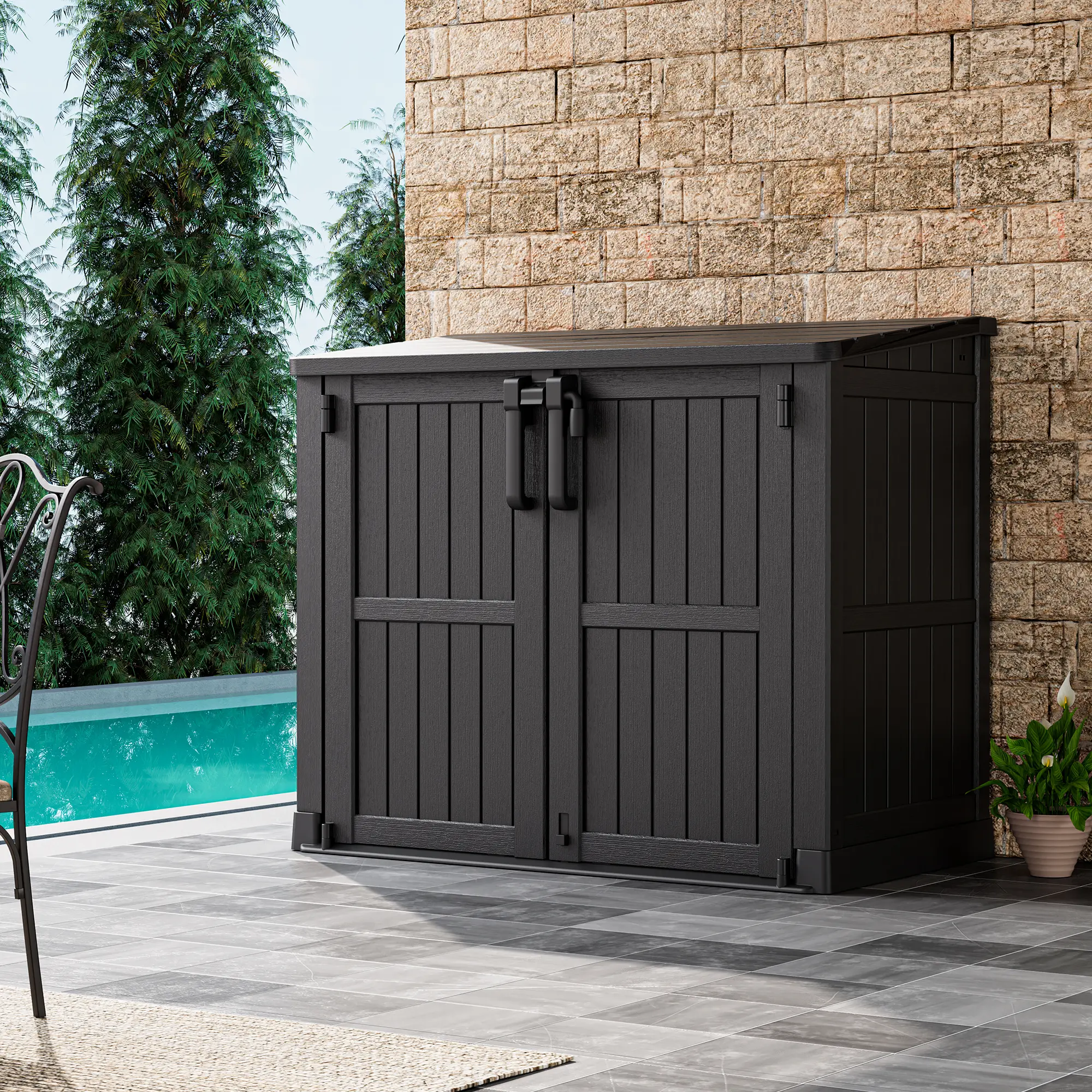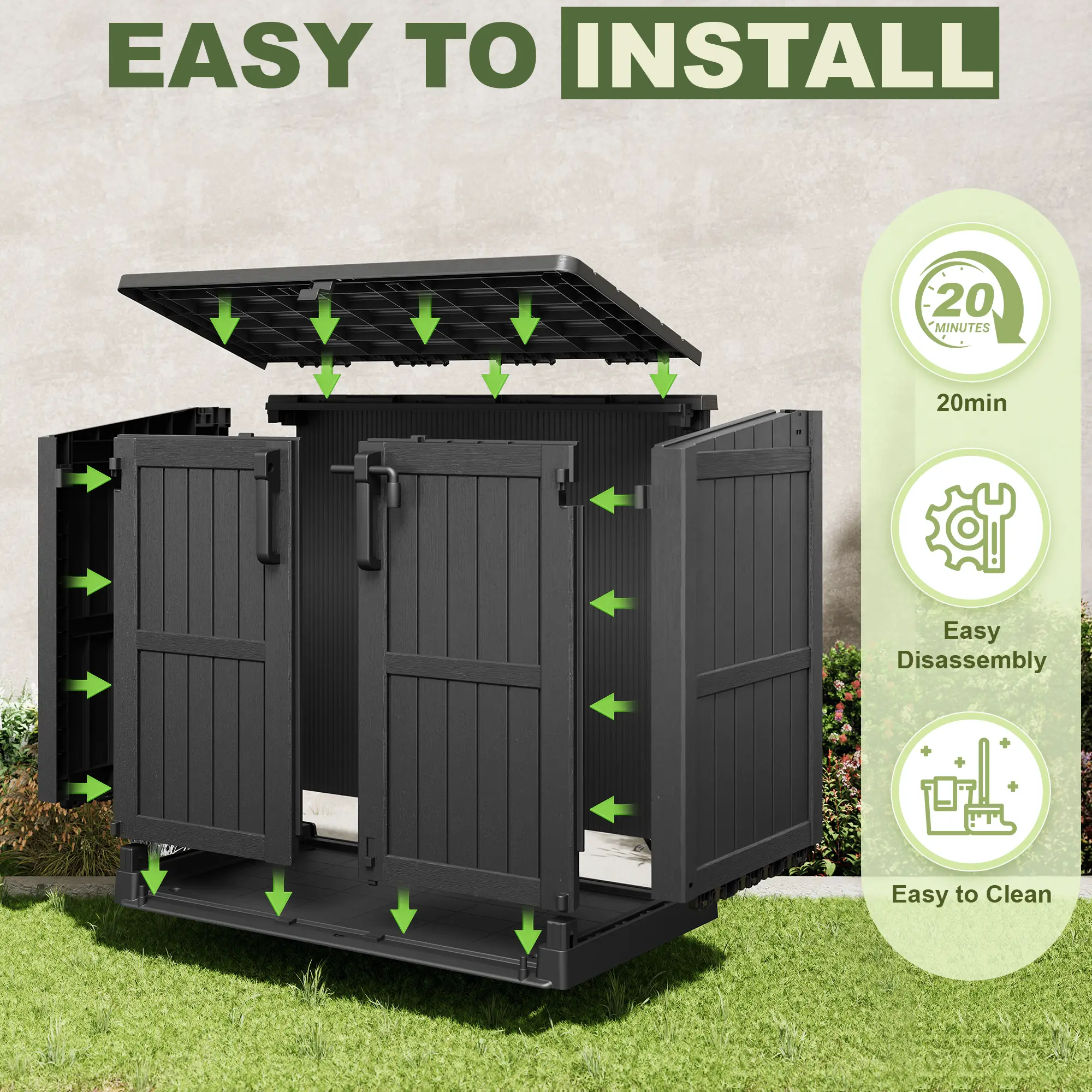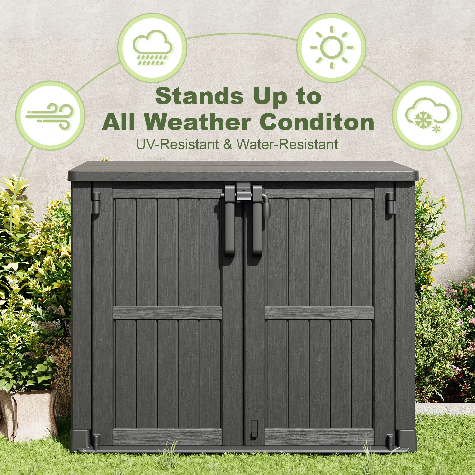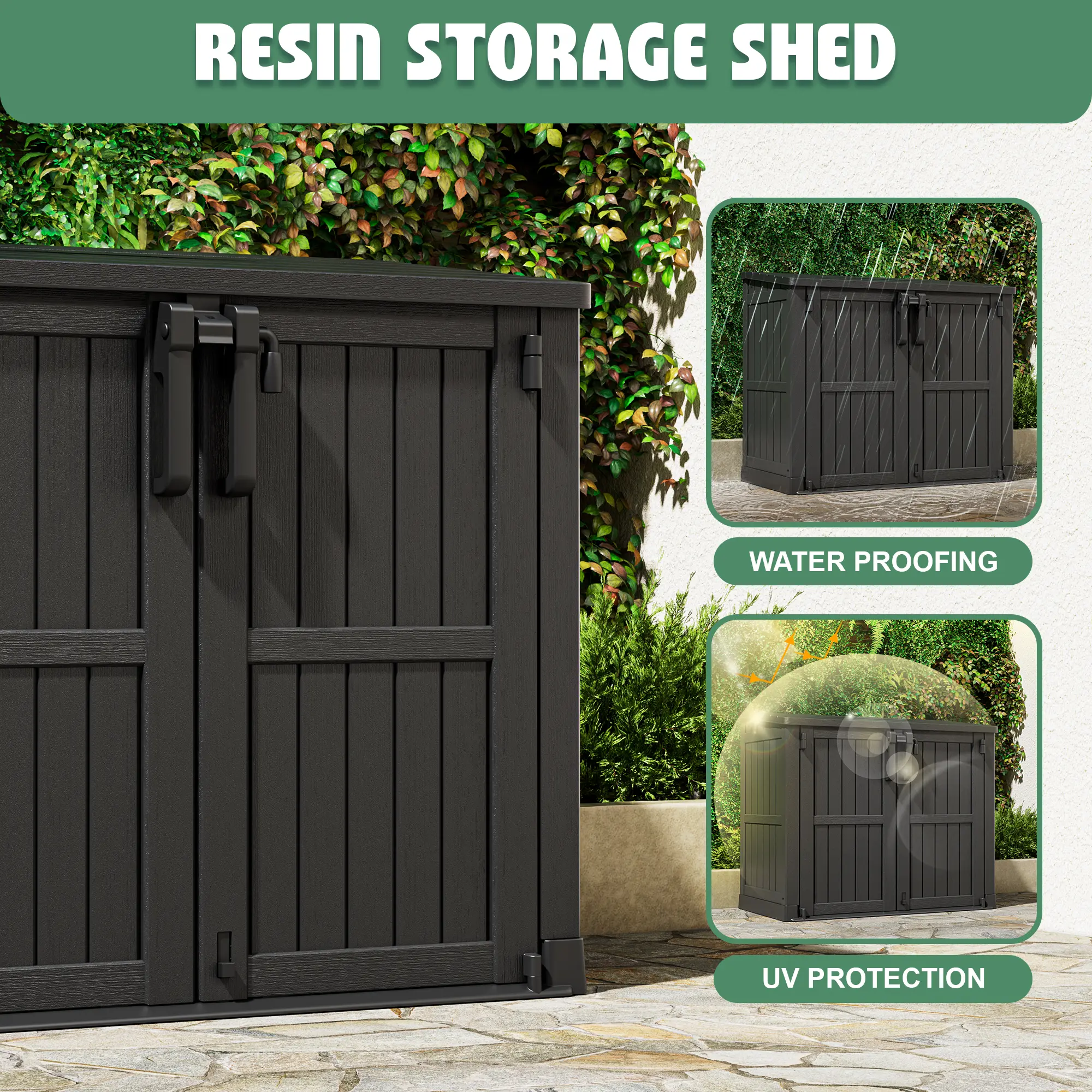 RIWENGO Outdoor Storage Shed Horizontal Storage Cabinet Waterproof for Garden Patio Backyard Trash Can Storage for Garbage Cans Tools Lawn Mower
