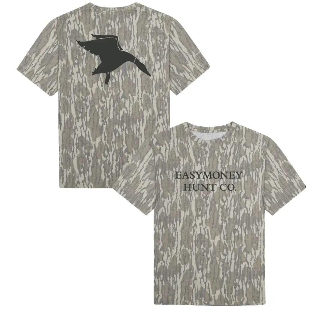 ·Duck Hunting Camouflage Tee: Perfect for bottomland duck hunters. This camo shirt is designed for waterfowl hunting apparel. Ideal for outdoor enthusiasts.