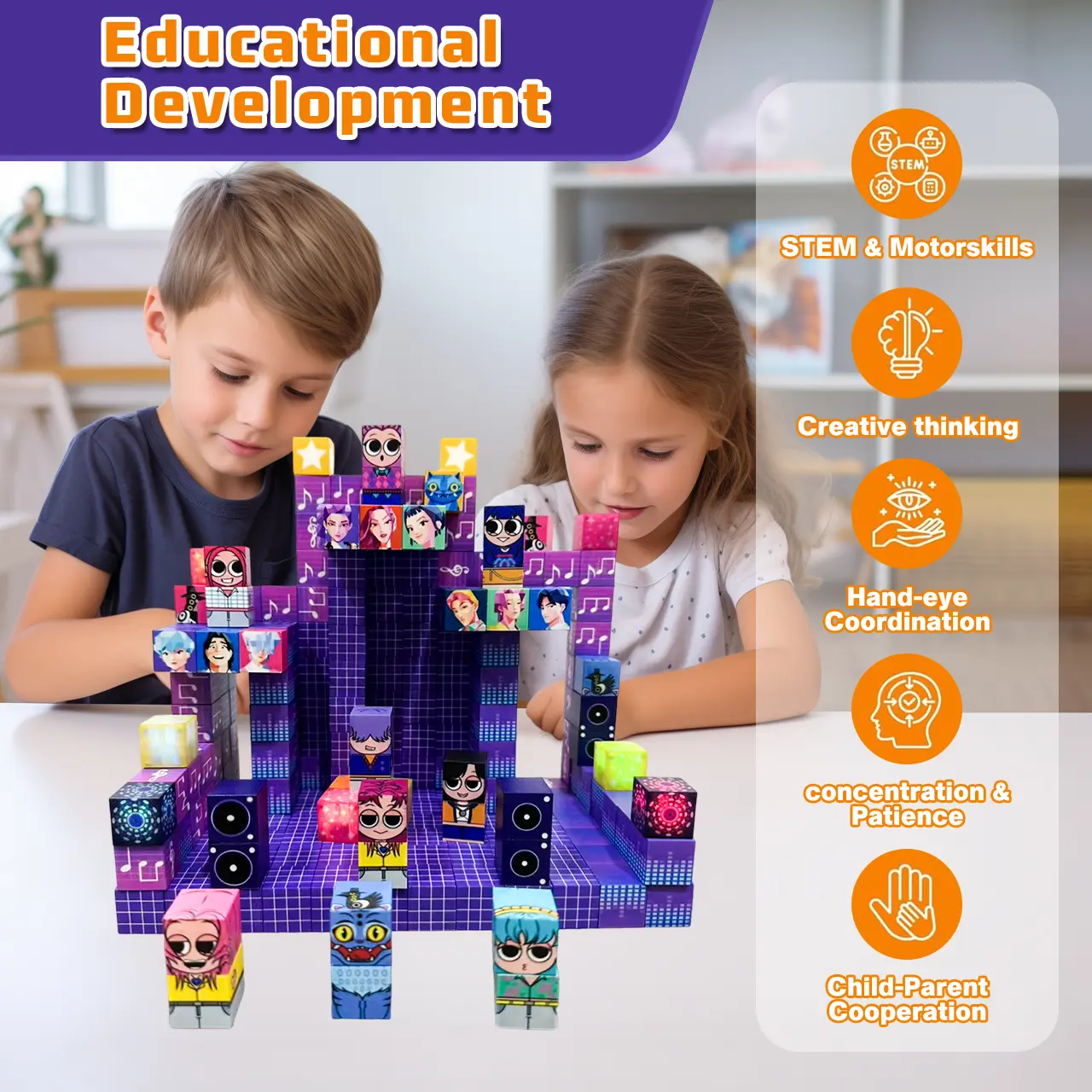 150PCS K-Pop Hunter Girl Team Magnetic Building Blocks with LED light-up pieces, Magnetized Construction Set, Fun and Educational Toy for Kids,erfect Easter gift