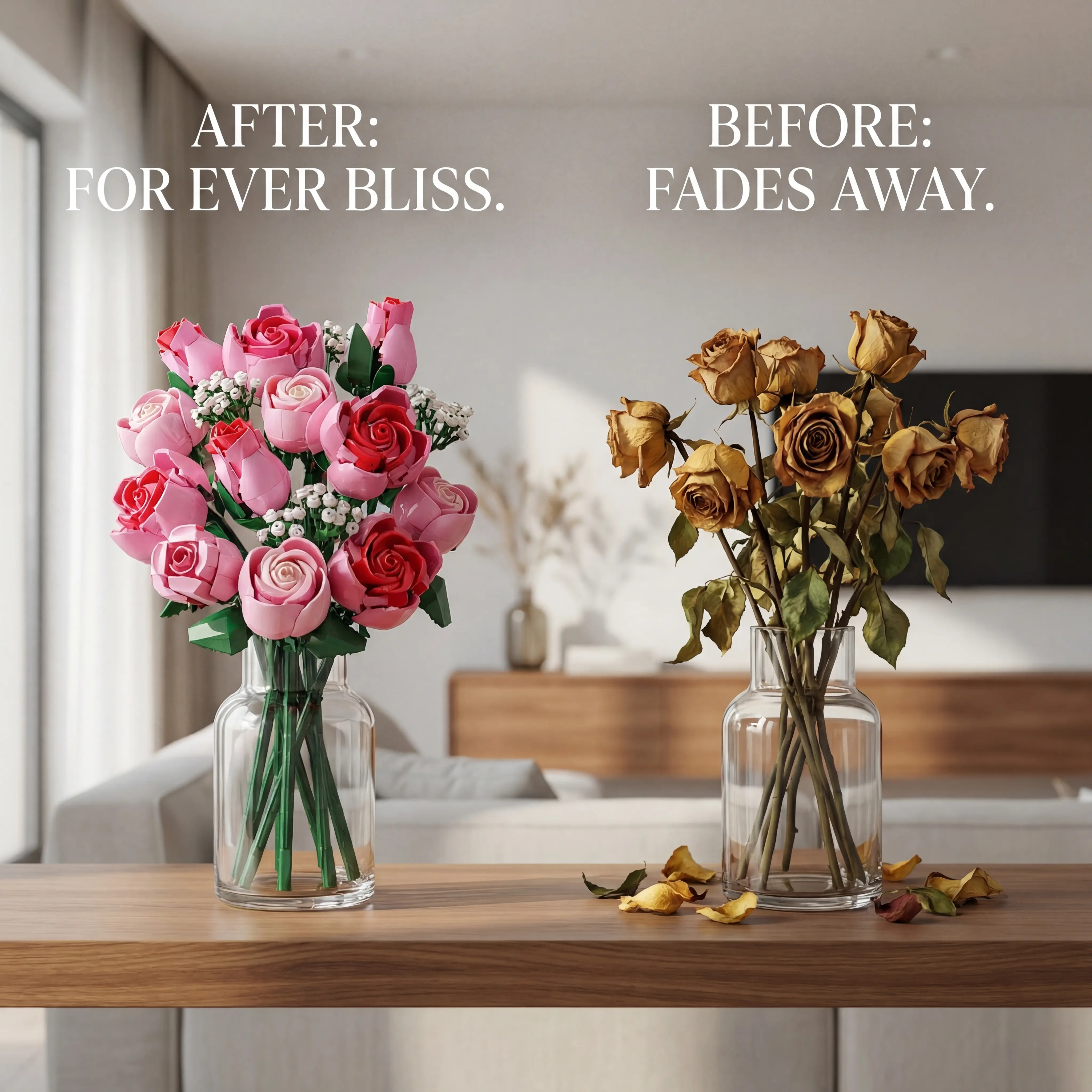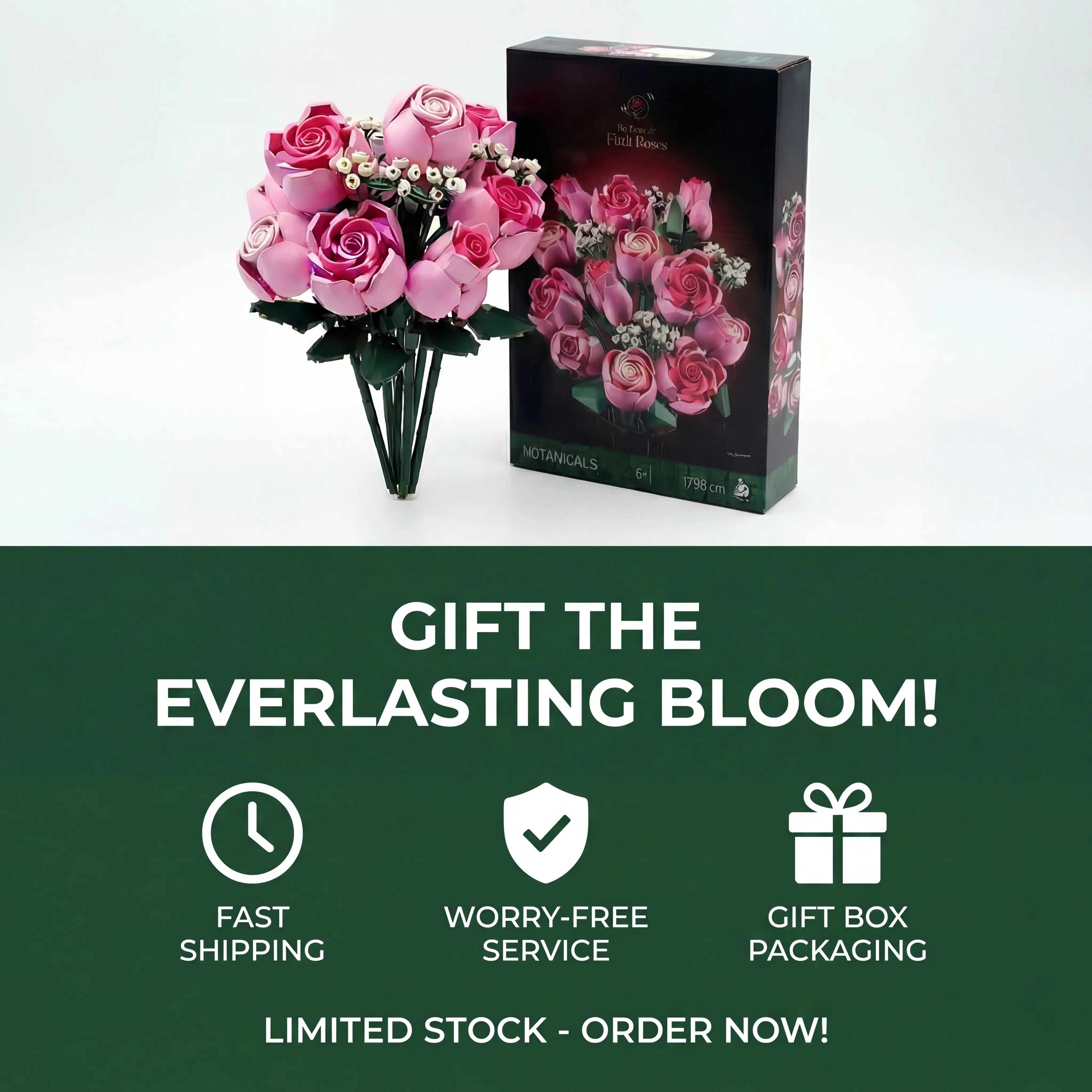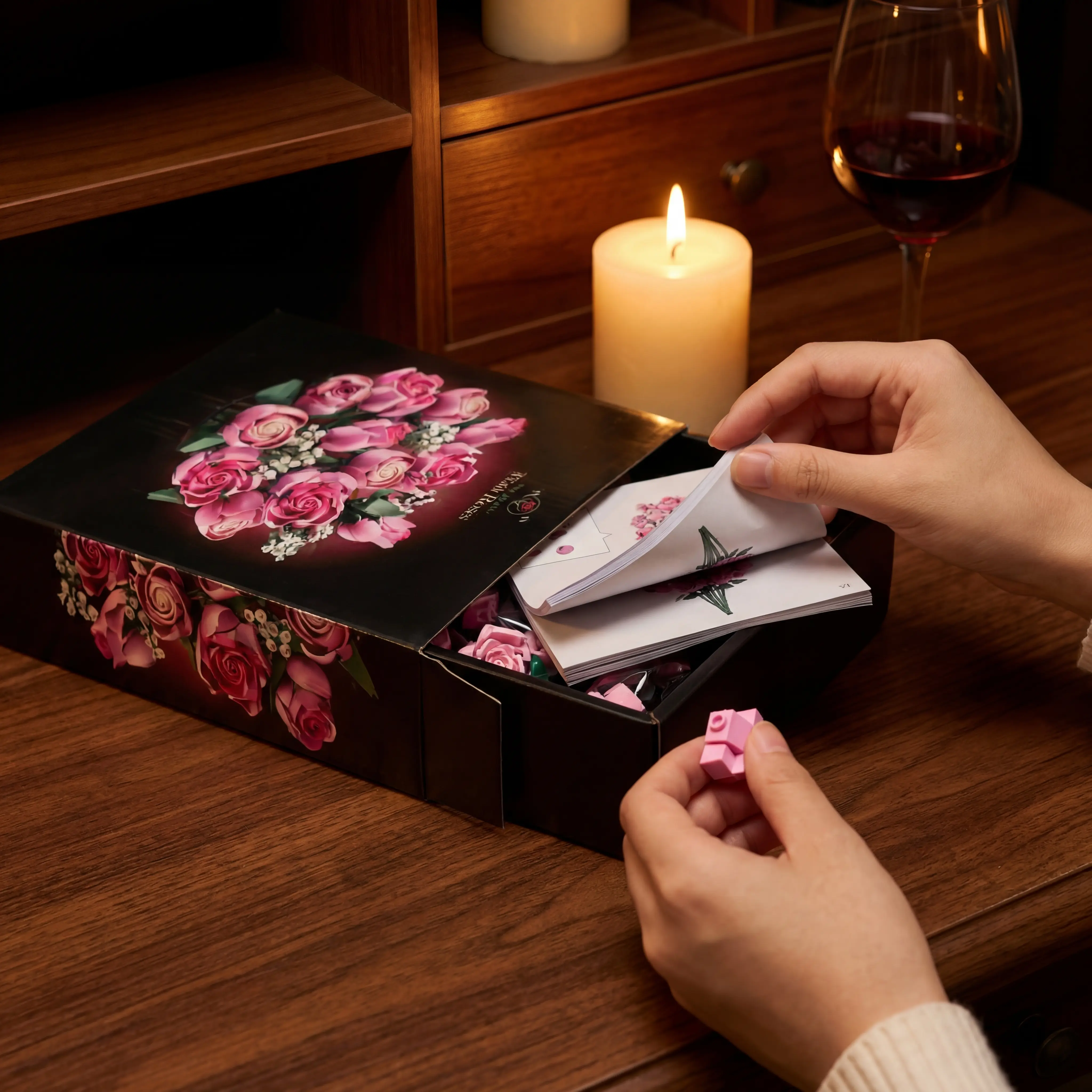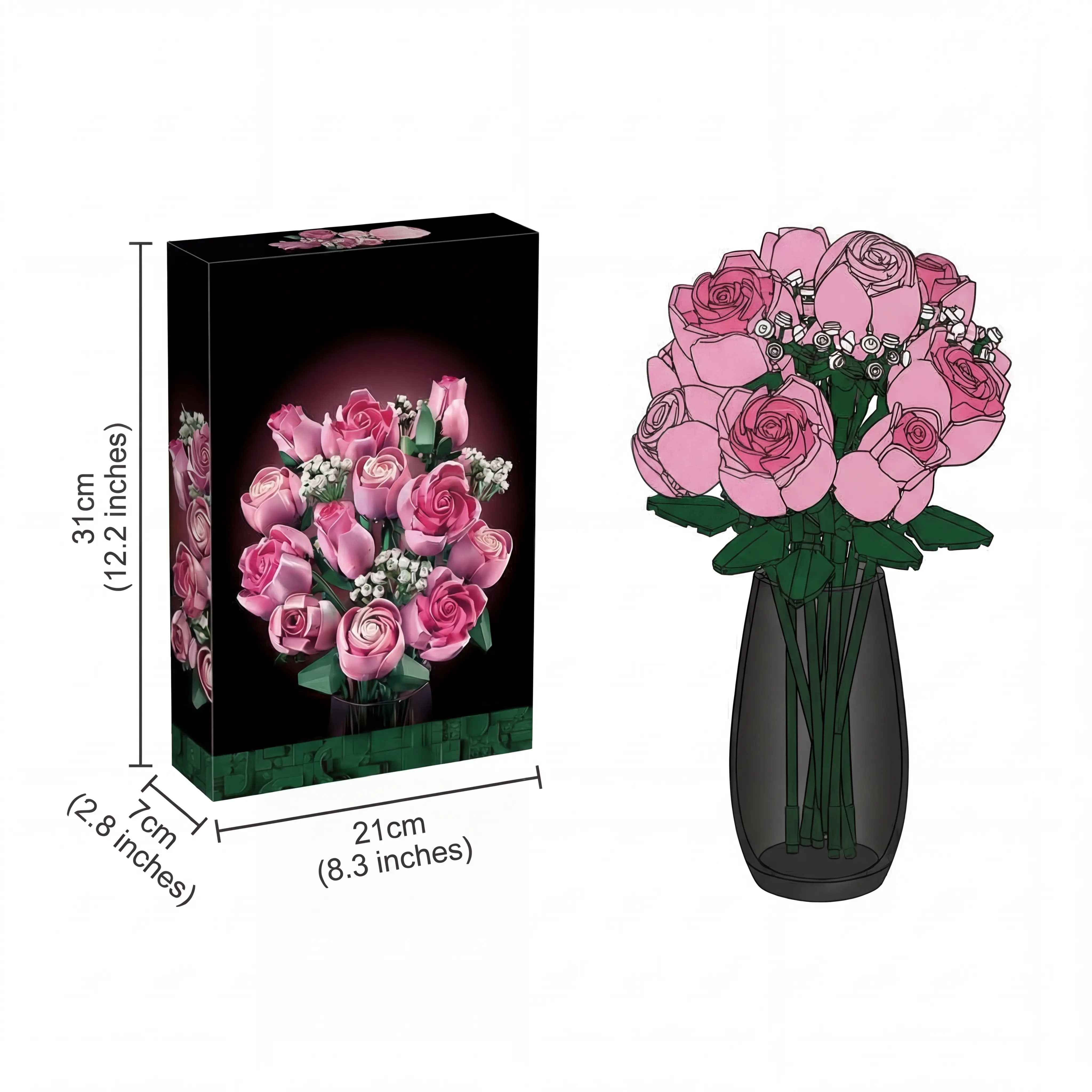 Pink Rose Flower Bouquet Building Set, 789 PCS Botanical Collection Building Blocks, DIY Artificial Flowers for Home Office Room Decor, Adult Building Toys, Gift for Girls Mom Teachers, Romantic Floral Arrangement, Never Withered Flowers