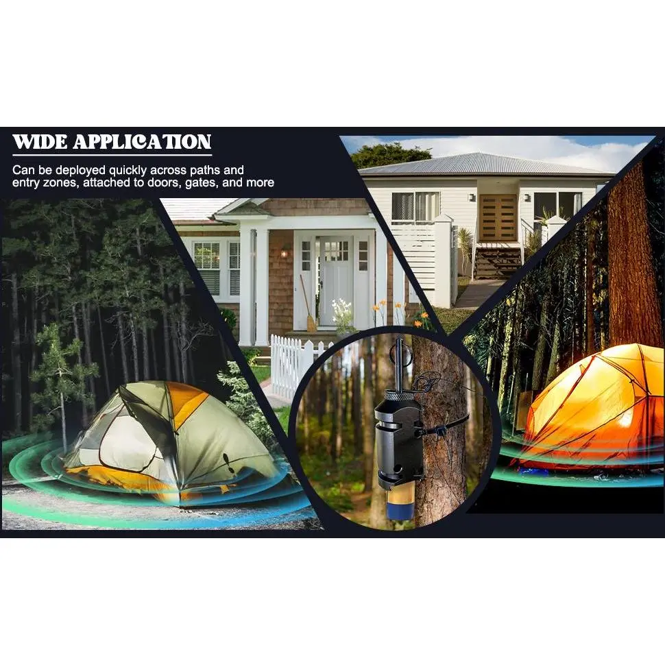Simple To Use: The Alarm Signaling Device Uses A Low-Placed And Concealed Trip Wire, Tethered To The Device Itself Which Creates A Loud Audible Alert When The Activator Pin Is Pulled Easily Attached, The Perimeter Alarms Are Spring Triggered, And Endlessly Reusable For Your Property And Personal Security.