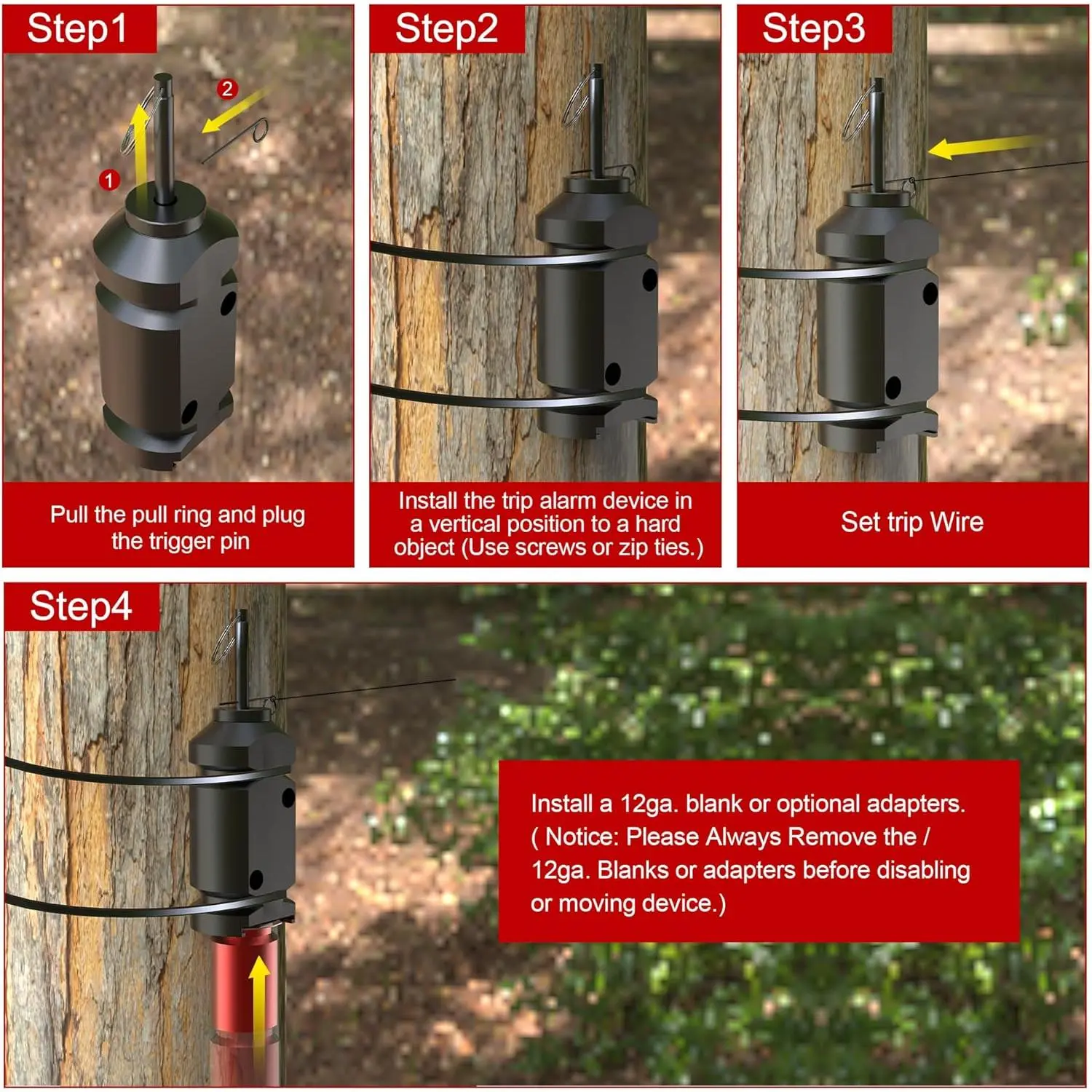 Safety Protection : Our Perimeter Trip Alarm Is A Trip Wire-Activated Trap Warning Device That Just Designed To Make A Loud Sound To Remind You To Keep Safe, Camping Trip Alarm Can Be Installed In Campgrounds, Farms, Entrance Areas, Keep Thieves Out Of Your Home And Dangerous Animals Out Of Your Camp Site.(Note: 12 Gauge Trip Alarm will Not Harm Anything)