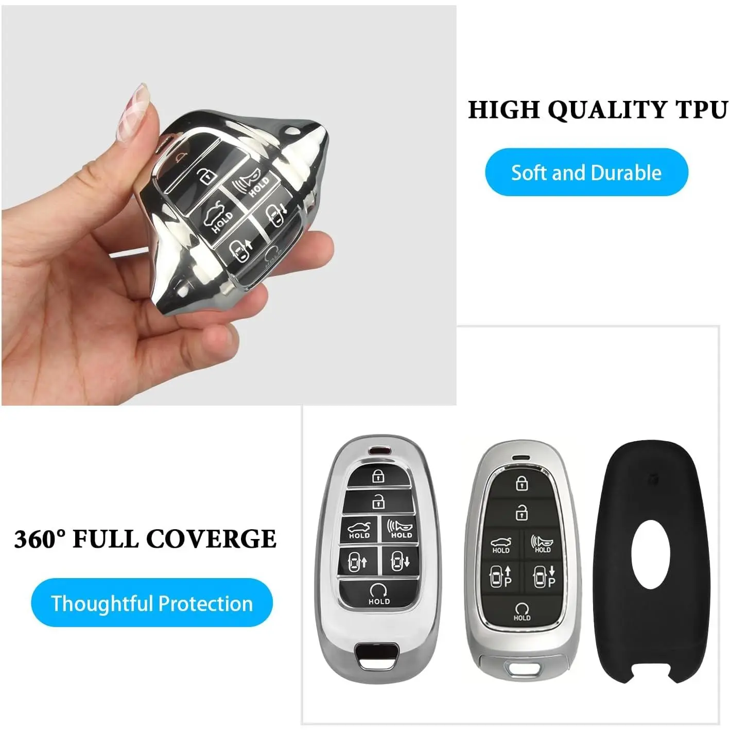 For Hyundai Key fob Cover Fit for 7 Buttons 2023 2022 2021 2020 Hyundai Sonata Santa fe Tucson TPU Key Fob Case Protector