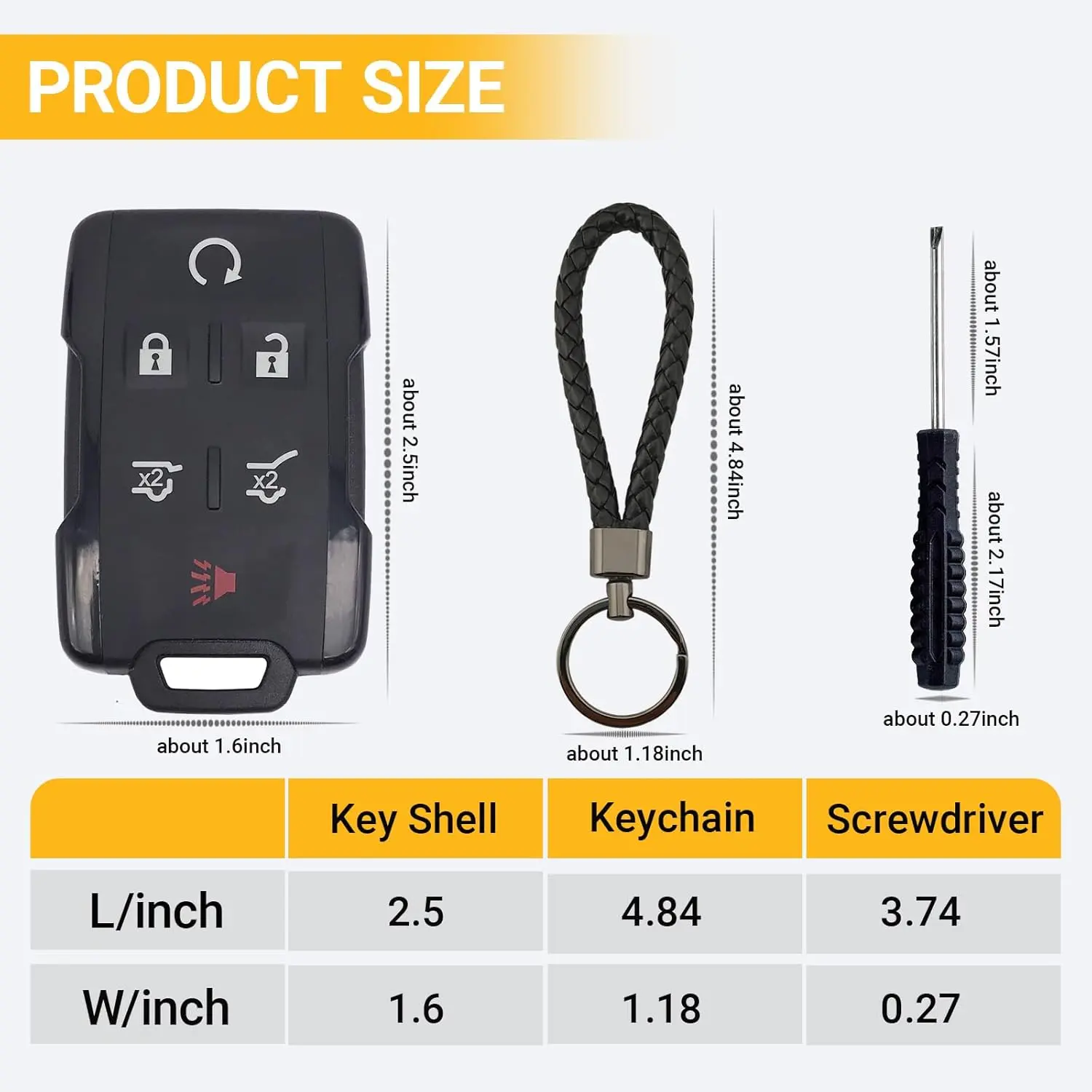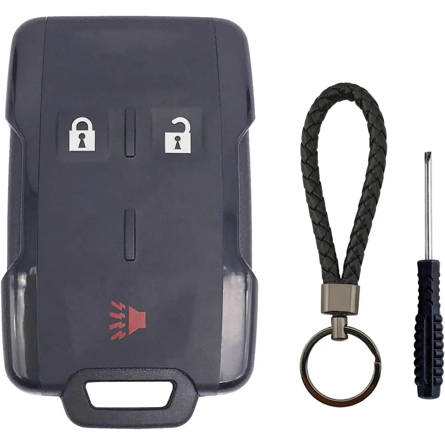 1 Empty Key Fob Case, 1 car keychain, 1 little screwdriver.