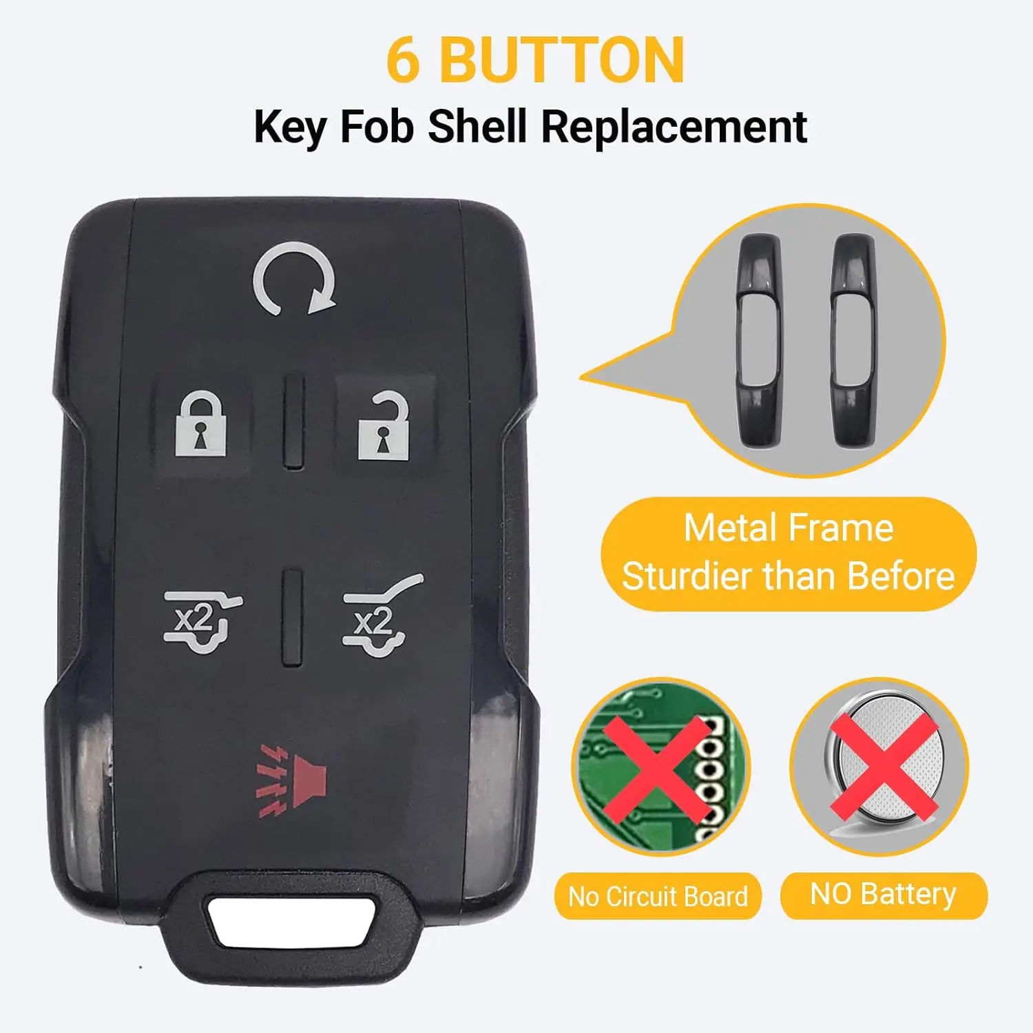 6 Button Replacement Key Fob Case Shell Fits for Chevy Tahoe Suburban GMC Yukon M3N-32337100 Keyless Entry Remote Control Car Key Fob