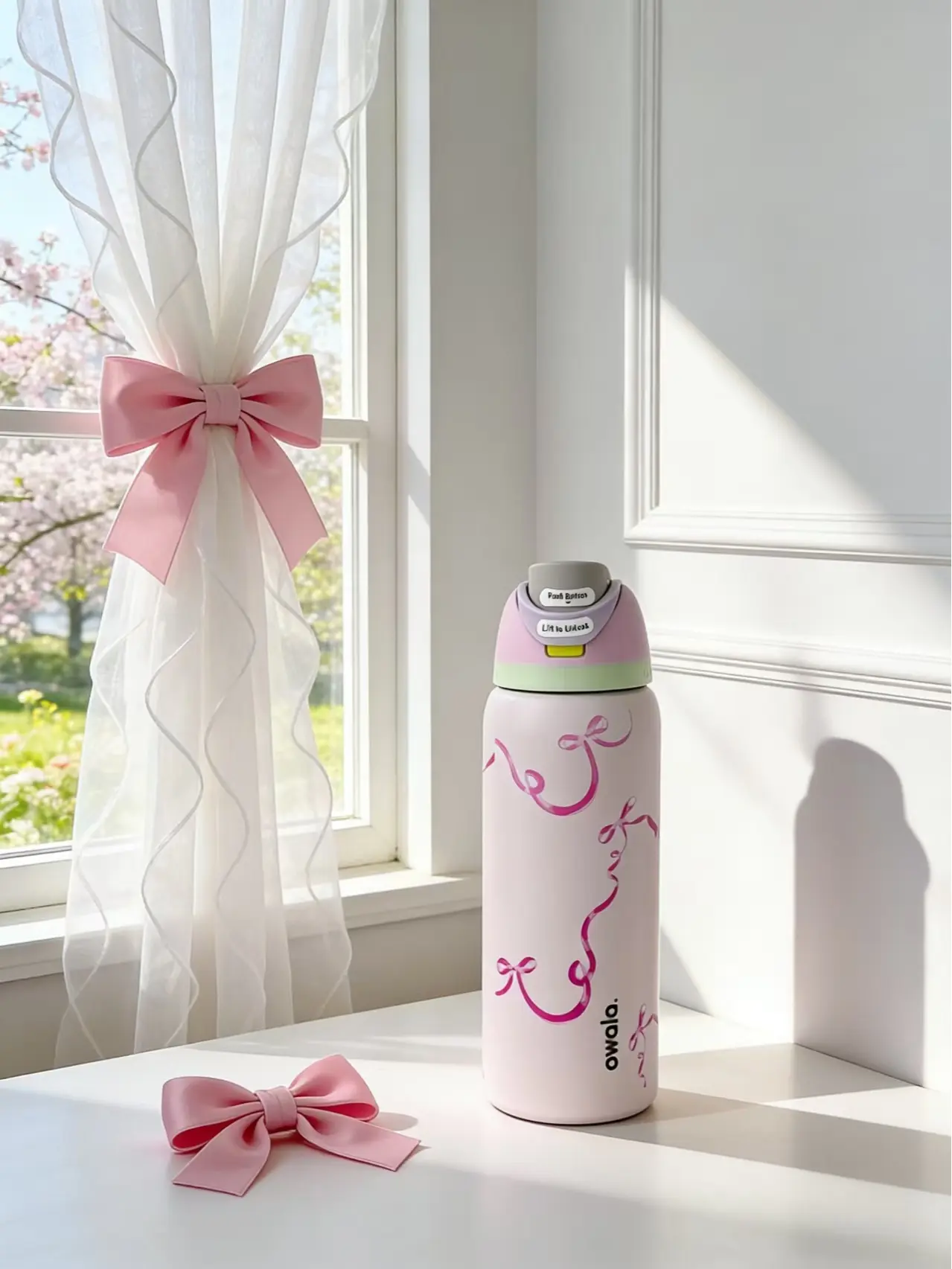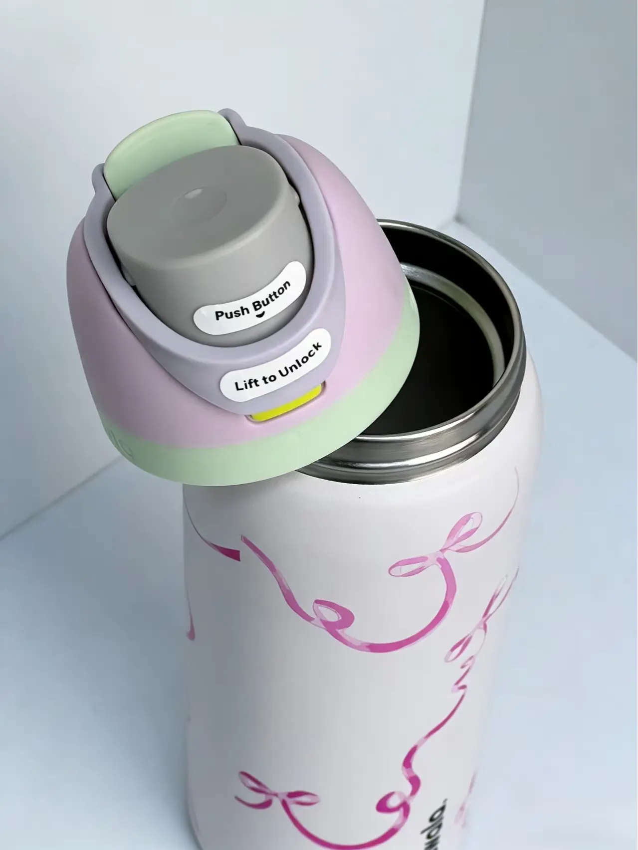 ·Cute Coquette Pink Ribbon Print: Adorned with a charming pink ribbon print, this bottle adds a touch of whimsy to your daily routine. It's not just a bottle; it's a statement piece.