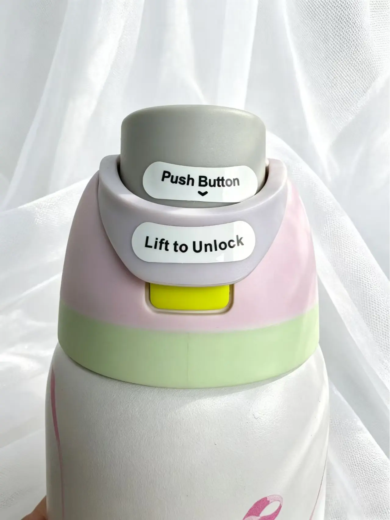 ·Lift-to-Unlock Straw Lid: The bottle comes with a unique lift-to-unlock straw lid. Simply lift the lid to access the straw, making it easy to drink on the go. No more fumbling with complex mechanisms.