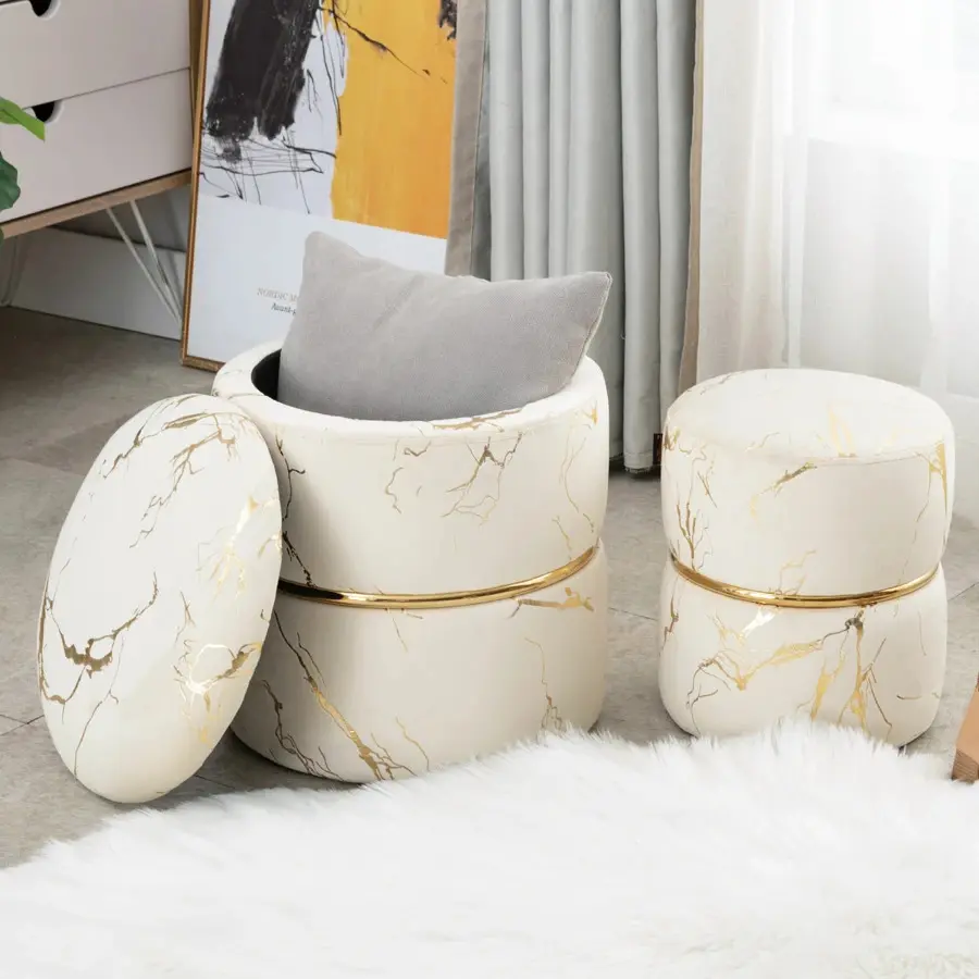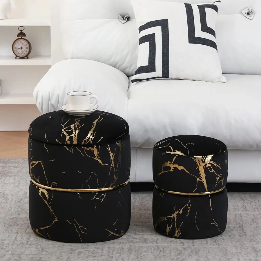 Glamorous and Functional:Bring both storage and seating to your living room arrangement with this two-piece ottoman set;These storage ottoman for dorms come in two different sizes, allowing the smaller ottoman to easily nest inside of the larger one for a space-saving design, Lift-off Lid with Anti-slip bolt also can be use as Coffee Table