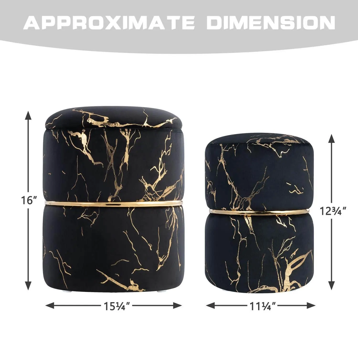 ✅Note: The bigger ottoman stool has the storage function and the smaller one doesn't.Size: set of 2: 15.25"L x 15.25"W x 16"H (Large One); 11.25"L x11.25"W x 12.75"H (Small One)