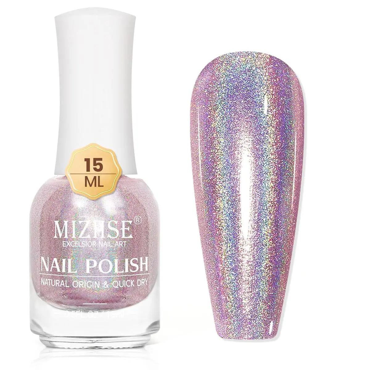 MIZHSE Holographic Nail Polish: 1 x 15 ml (0.5 fl oz) holographic nail polish. The nail polish is high pigmented that makes the nails shine like rainbow. Can get different holographic rainbow effects based on different lights and viewing angles. Professional nail polish for infinite styles. Iridescent nail polish is suitable for use with any color nail polish you like as base color.