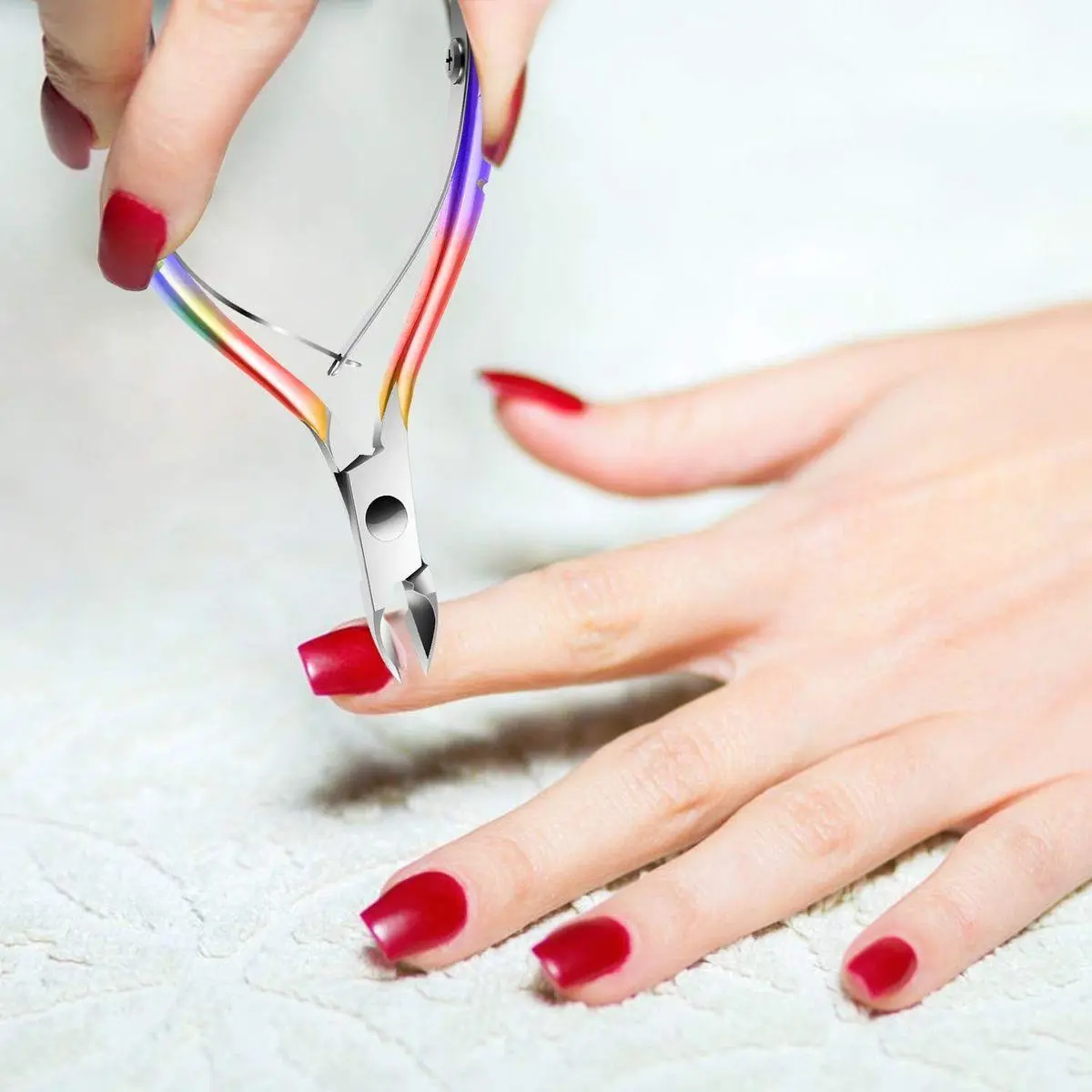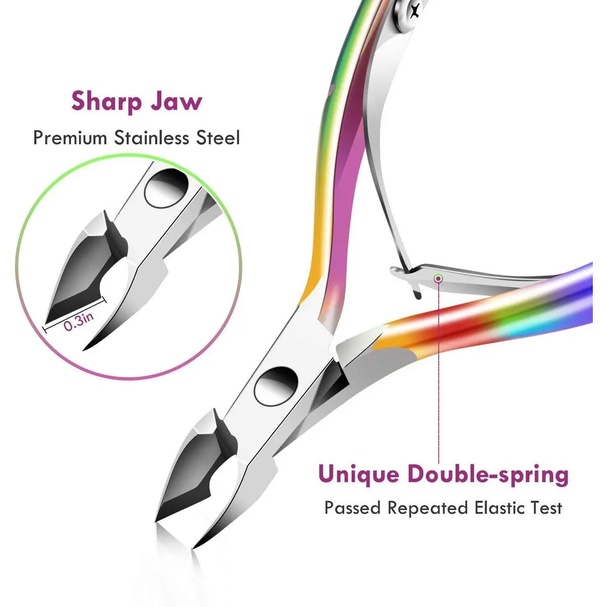 Effective Jaw Design of the Cuticle Cutter -- The cuticle nipper could easily scraper the cuticle or nail gels, even in small areas around nails. Jaw head snipper isolates the problem area and snips away cleanly. Sharp finished tips for precise cutting of hangnails and ragged cuticles.They are ideal for families, spas and beauty salons.