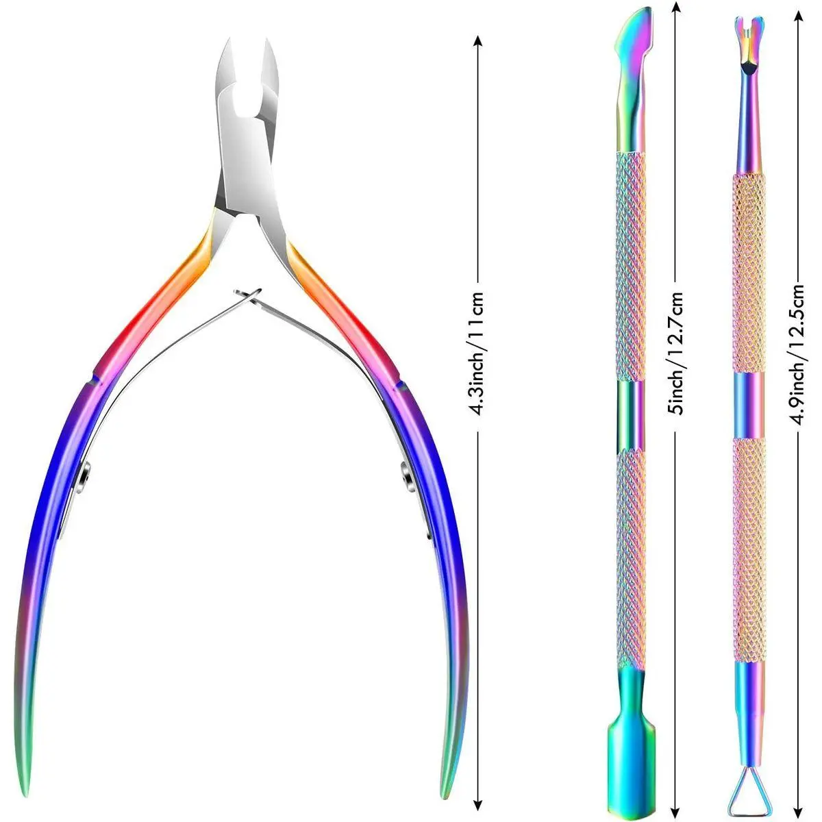 Ergonomic Non-slip Handle Design -- Our professional cuticle remover tools set is designed with an ergonomic non-slip handle, providing you with a comfortable hand feeling, you can remover the cuticles more effectively. In addition, the chameleon design makes it a beautiful set of color manicure artwork.