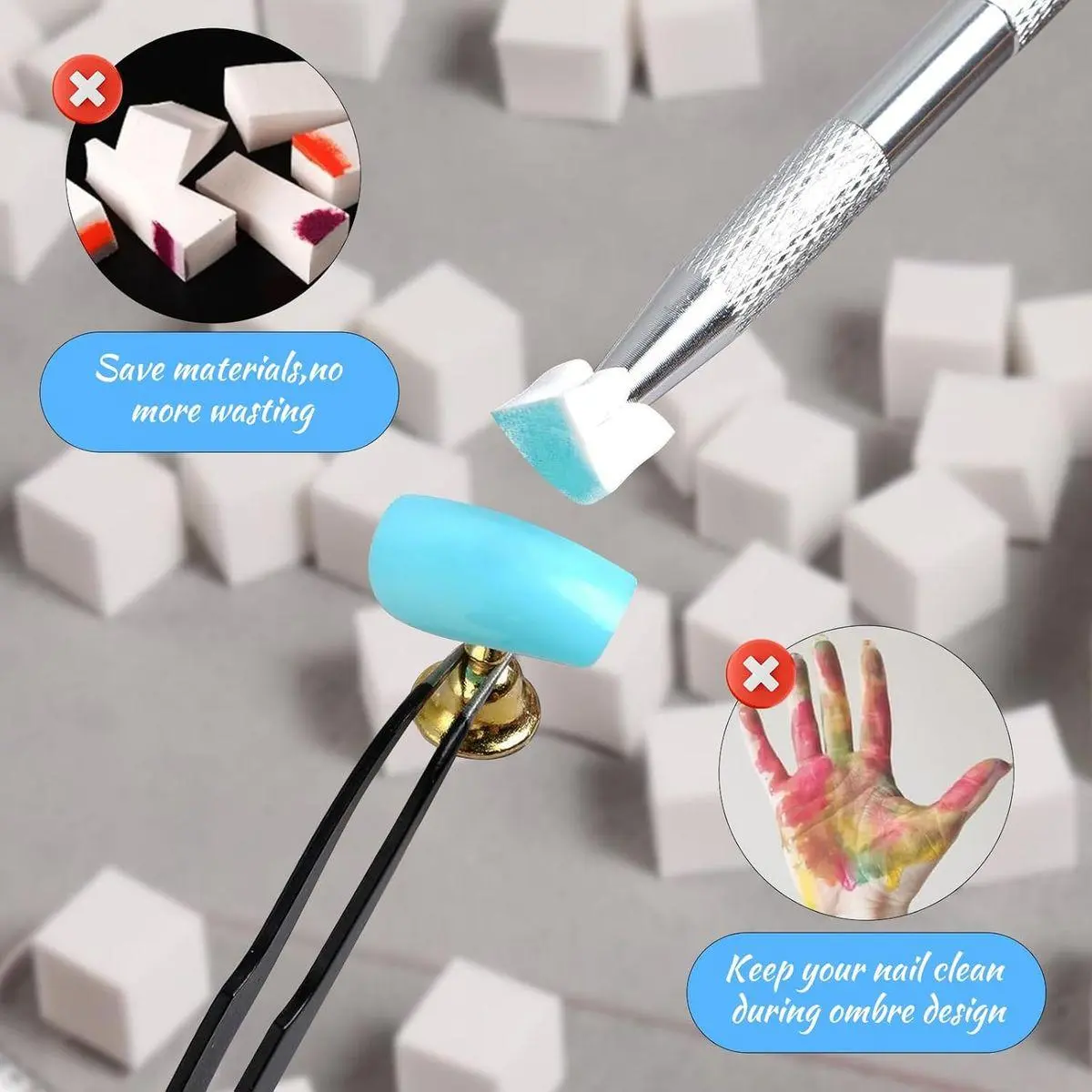 👕【Ombre Nail Sponges】The nail sponge size: 0.39*0.39*0.39 inches, the mini nail sponges is perfect for ombre nail design and aura nail art.