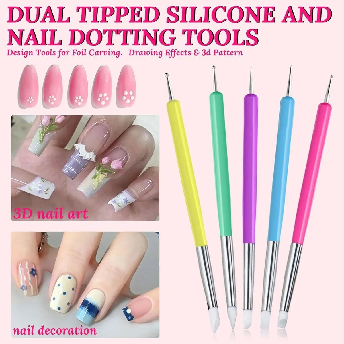 Double-Ended Dotting & 3D Sculpting Pen: This dual-tipped tool features two functional ends. One end is a dotting tool with five sizes (0.8mm, 1mm, 1.5mm, 2mm, 2.5mm), perfect for creating dots, outlining, painting, and other nail art designs. The other end is a nail sculpting tool with five different shapes, ideal for crafting three-dimensional patterns and shapes such as flowers, geometric designs, animals, and other 3D art effects. It is an essential tool for high-end creative nail art