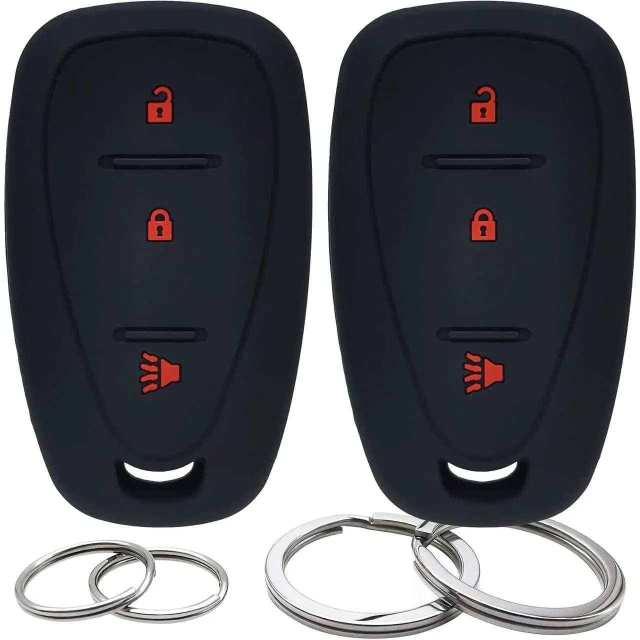 Button: 3 Buttons Color: Black & Hot Pink Key Cover Material: Soft Silicone Key Ring Material: 18/8 Stainless Steel