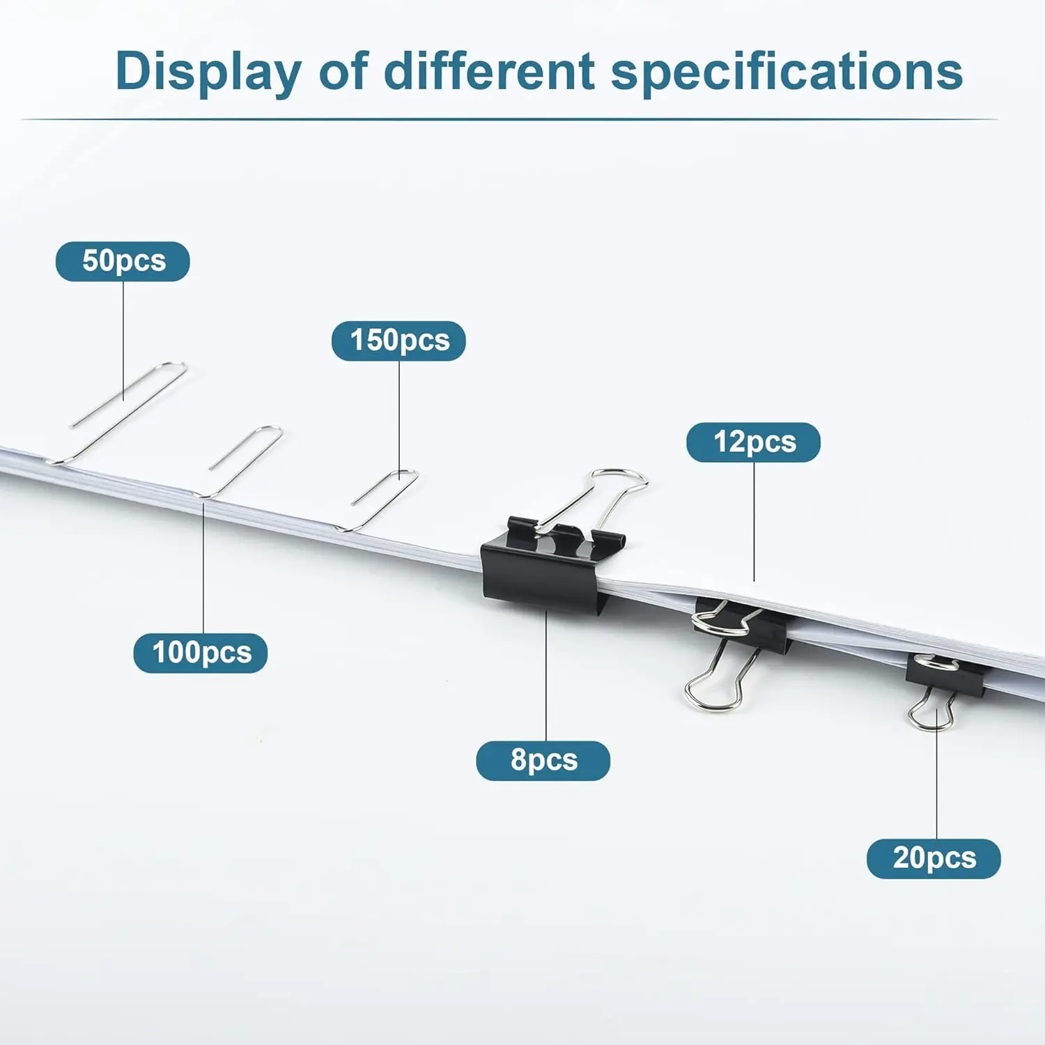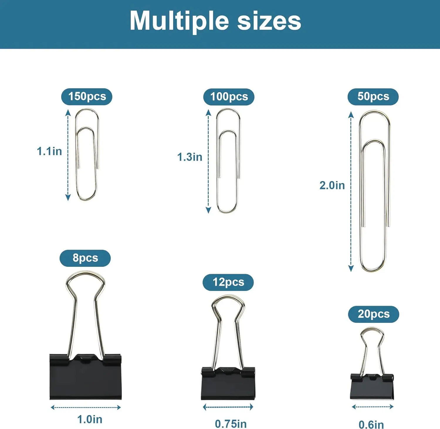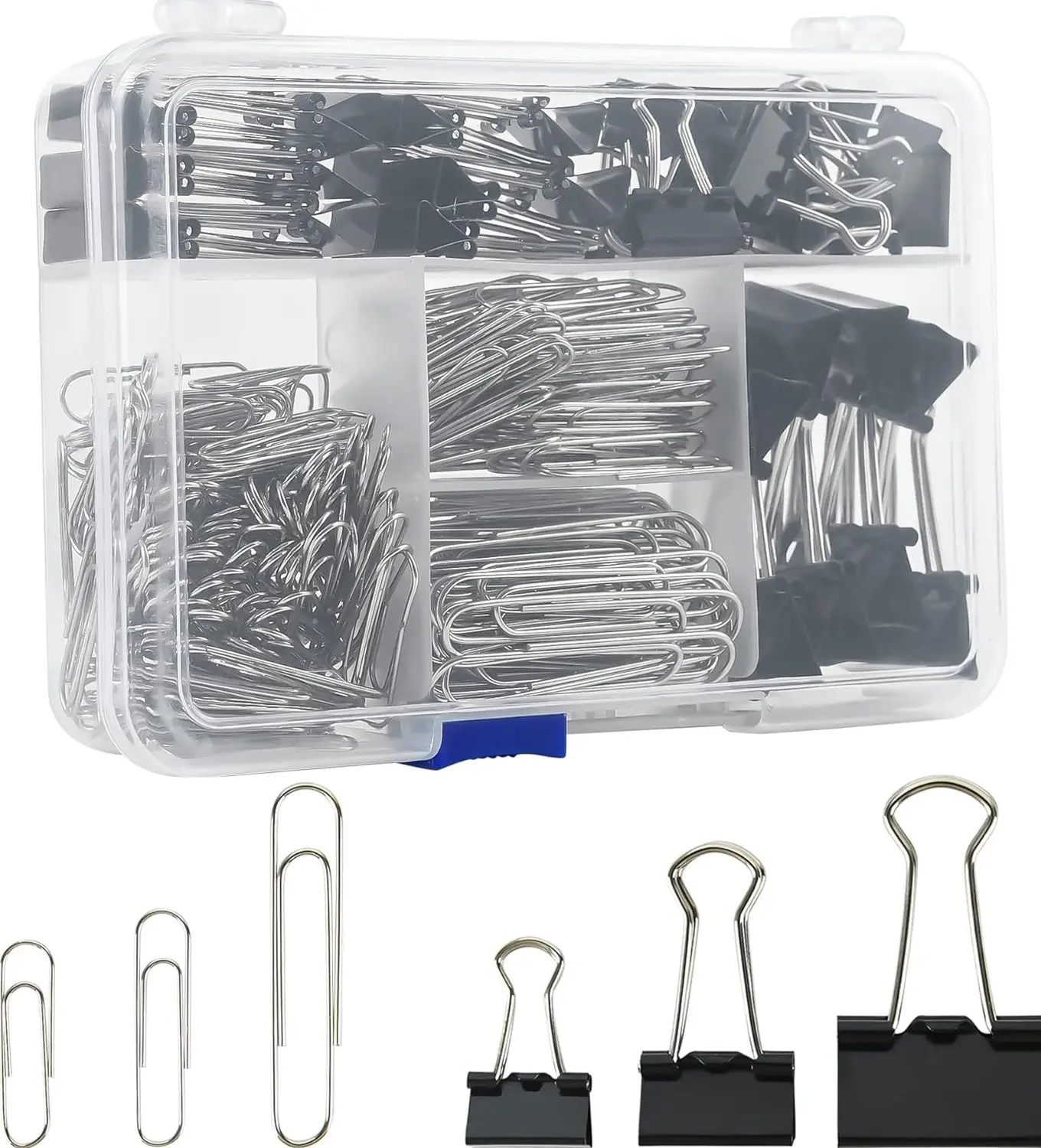 ·340PCS Assorted Clips: Includes both binder clips and paper clips for versatile use