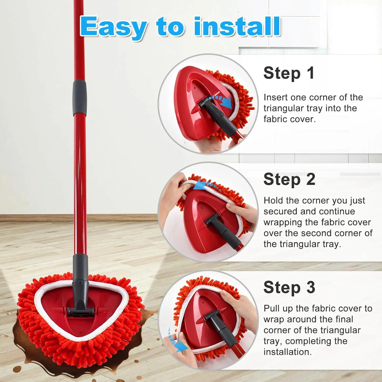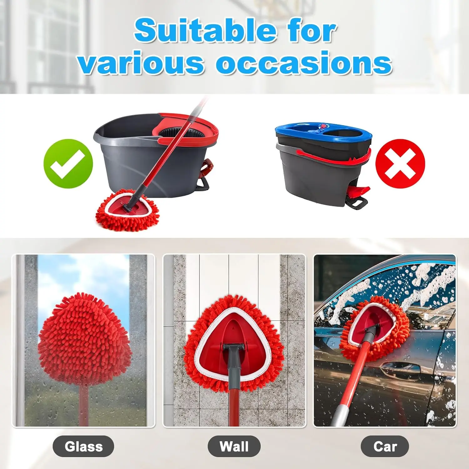 Perfect Compatibility: This Mop Replace Head for Ocedar Easywring 1 Tank Spin Mop, Chenille Duster for Ocedar Mop Include 4 Pack Red Microfiber Chenille Mop Pads for Ocedar Spin Mop