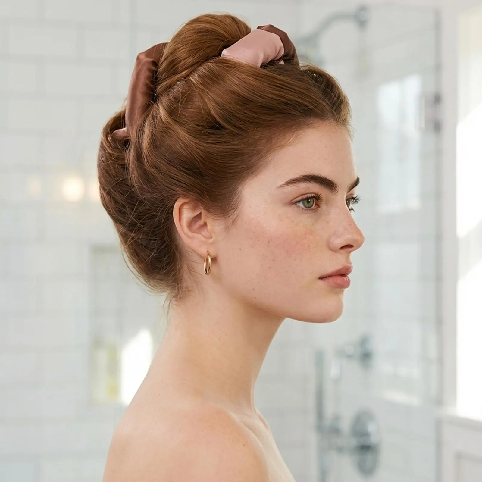 Kitsch Luxury Shower Caps for Women Reusable Waterproof - Flexi Satin Lined, Quick-dry, Adjustable, Hair Cap for Long & Short Hair - Terracotta