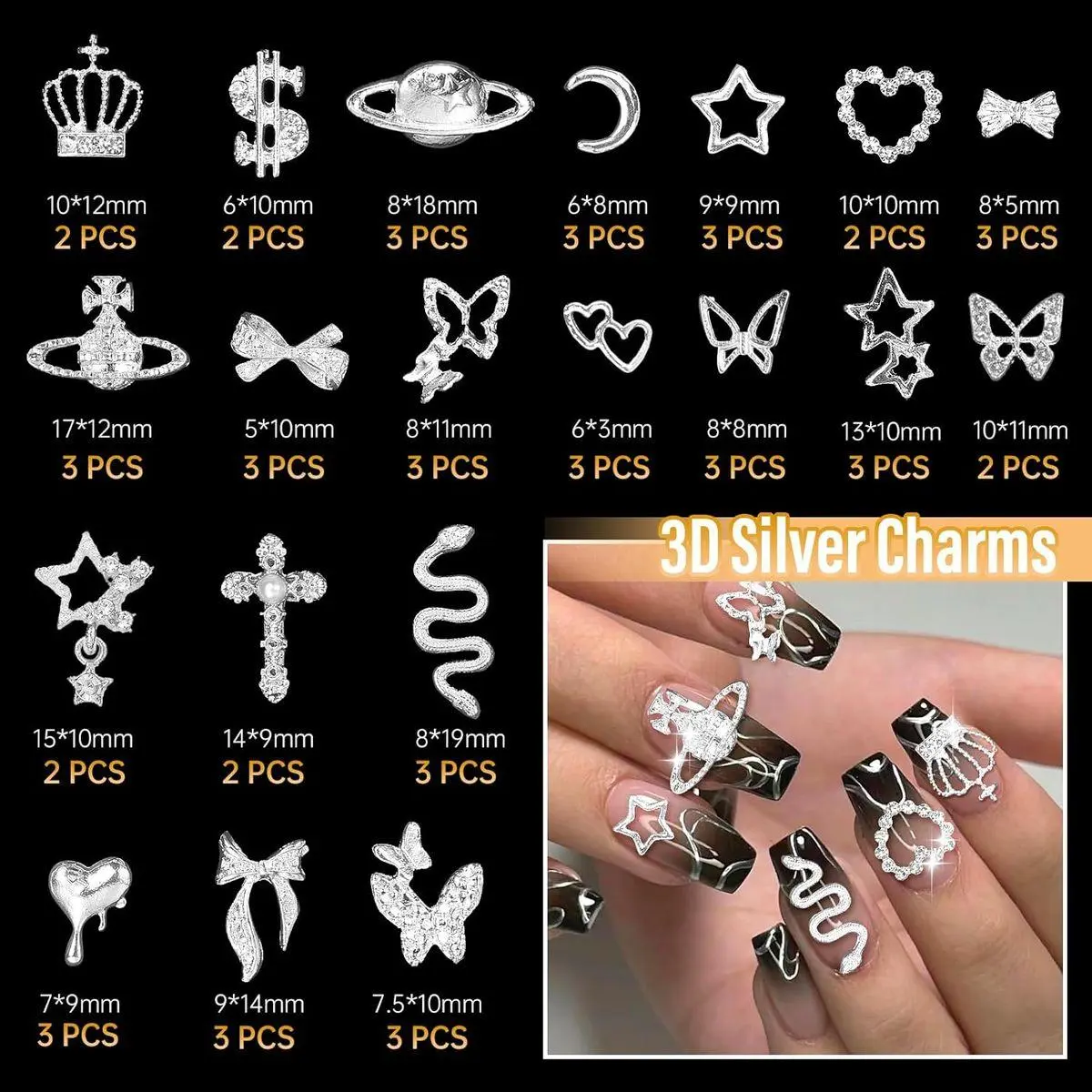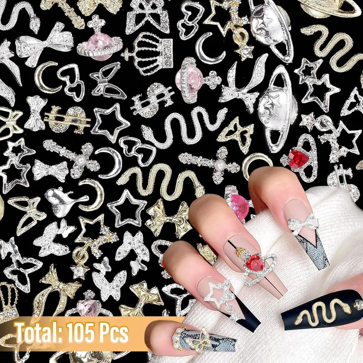What You Get:You will get 105PCS silver gold nail gems charms. Sufficient quantity and rich styles can meet your various needs in DIY nail art or any other handmade projects